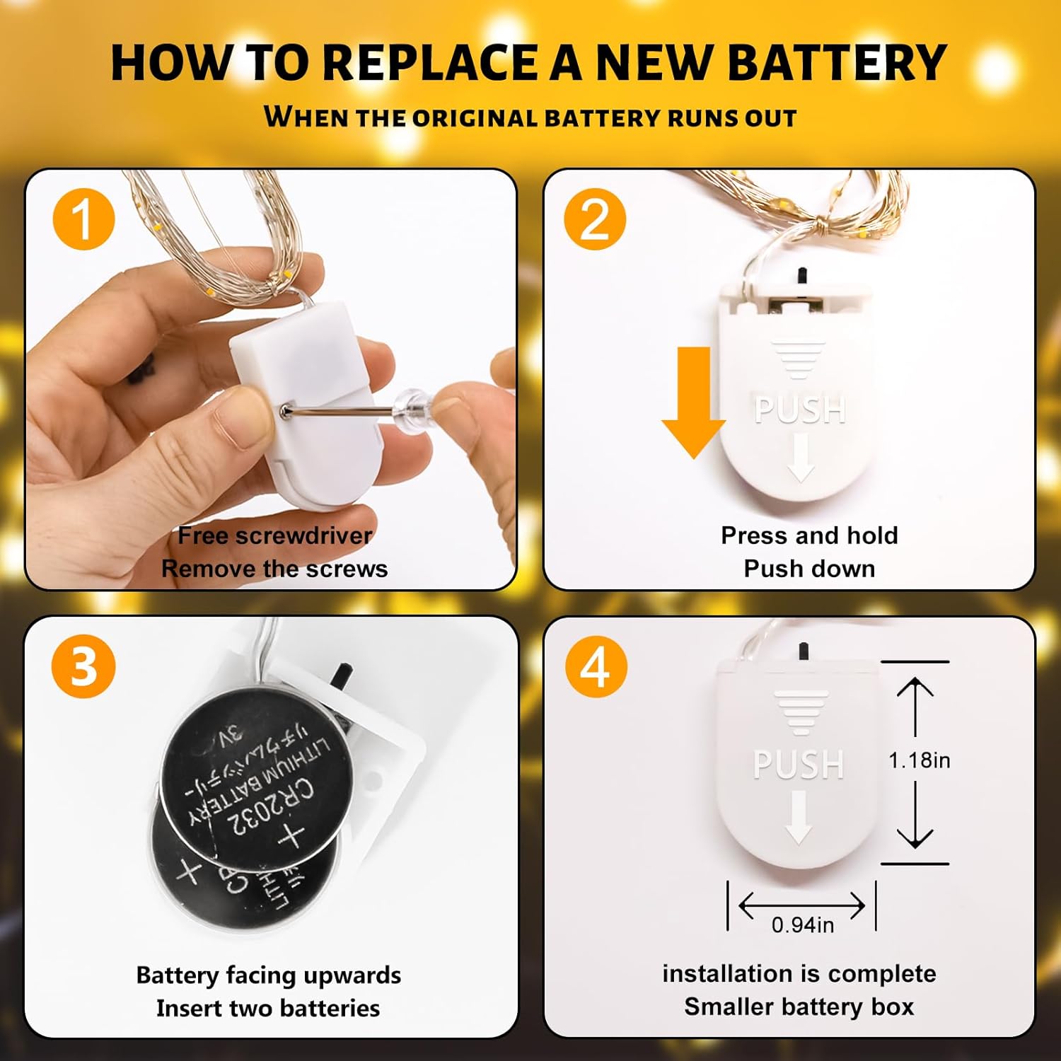 • 【Battery Powered】: Each set of lights powered by 2X CR2032 batteries( included and can be replaced). Although these support more than 72 hours continuous working, the actual use time will vary with the temperature and humidity of the environment.