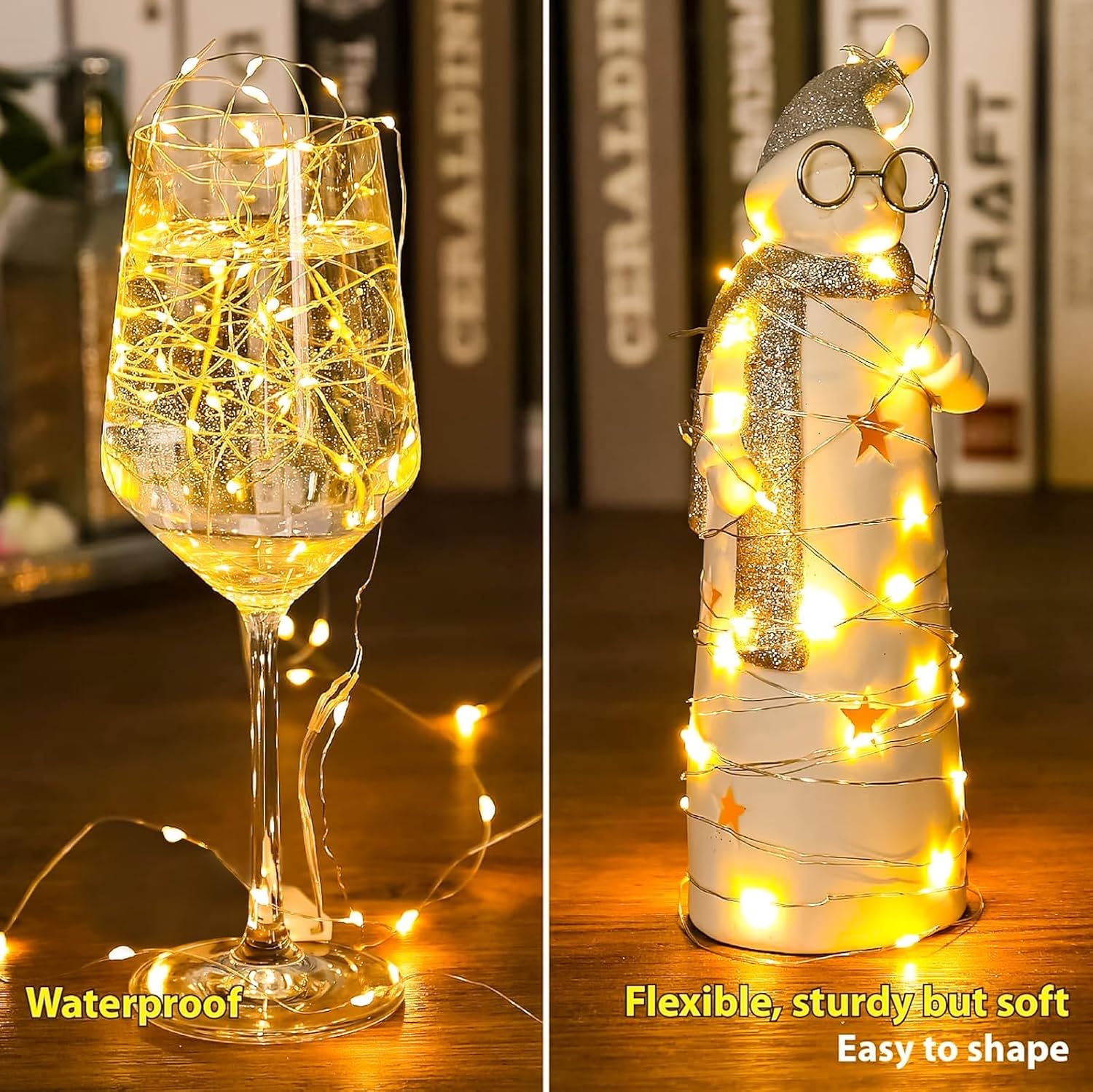 • 【Fantastic Warm White Lights】: 6 separate mini fairy lights battery powered, each with 20 small lights and the brightness is high yet warm/cozy. Made of 7ft high quality Silver coated copper wire, It’s flexible, strong and durable. Perfect for your crafts project , floral arrangements plants, signs, furniture glass jars, vases, wine bottles or other decorations.