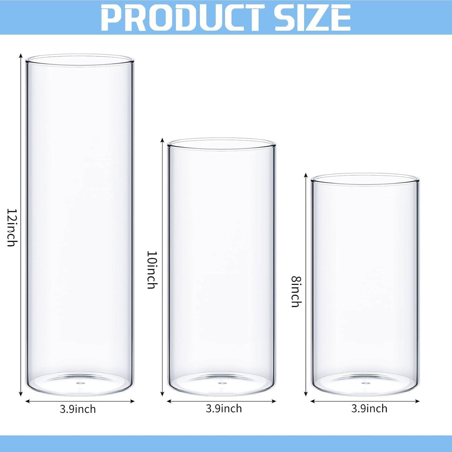 • Assorted Size: per glass cylinder vase for centerpieces measures 3.9 inch in diameter, and there are 3 kinds of height available, 8 inch, 10 inch and 12 inch, to meet your decoration needs for various occasions