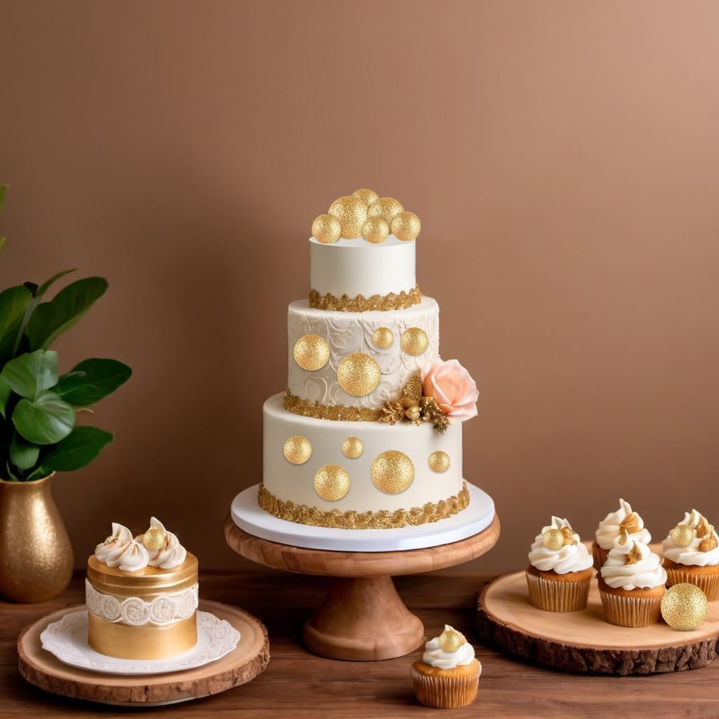 • Package includes: 20 pcs glitter gold ball cake decorations. The diameter of these ball cake toppers are 0.79 inch/ 2 cm, 0.98 inch/ 2.5 cm, 1.18 inches/ 3 cm, 1.57 inches/ 4 cm, 5 pieces of each size.