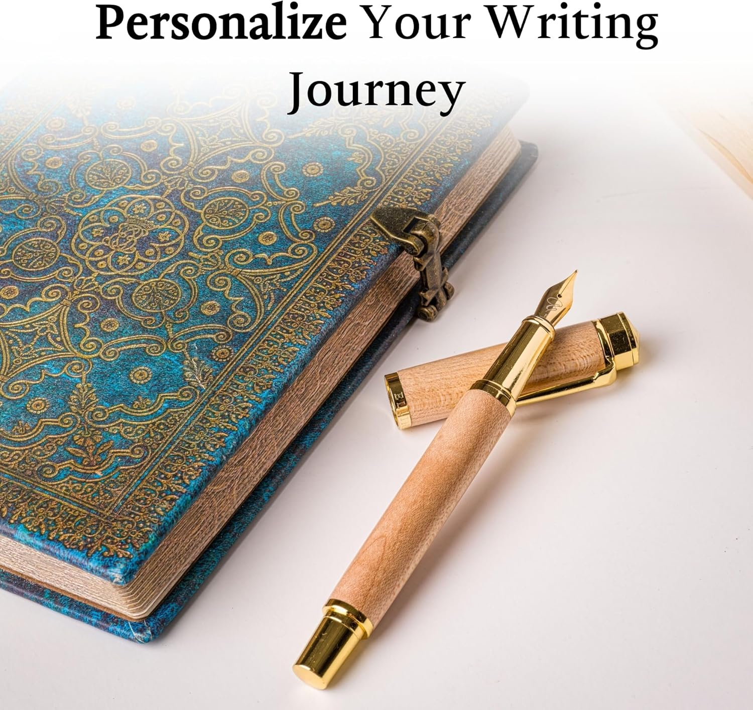 Ellington Pens Elegant Wood Fountain Pen Set – Includes Wooden Pen Box, Ink Converter, 6 Ink Cartridges, and Gift Box – Writing, Calligraphy