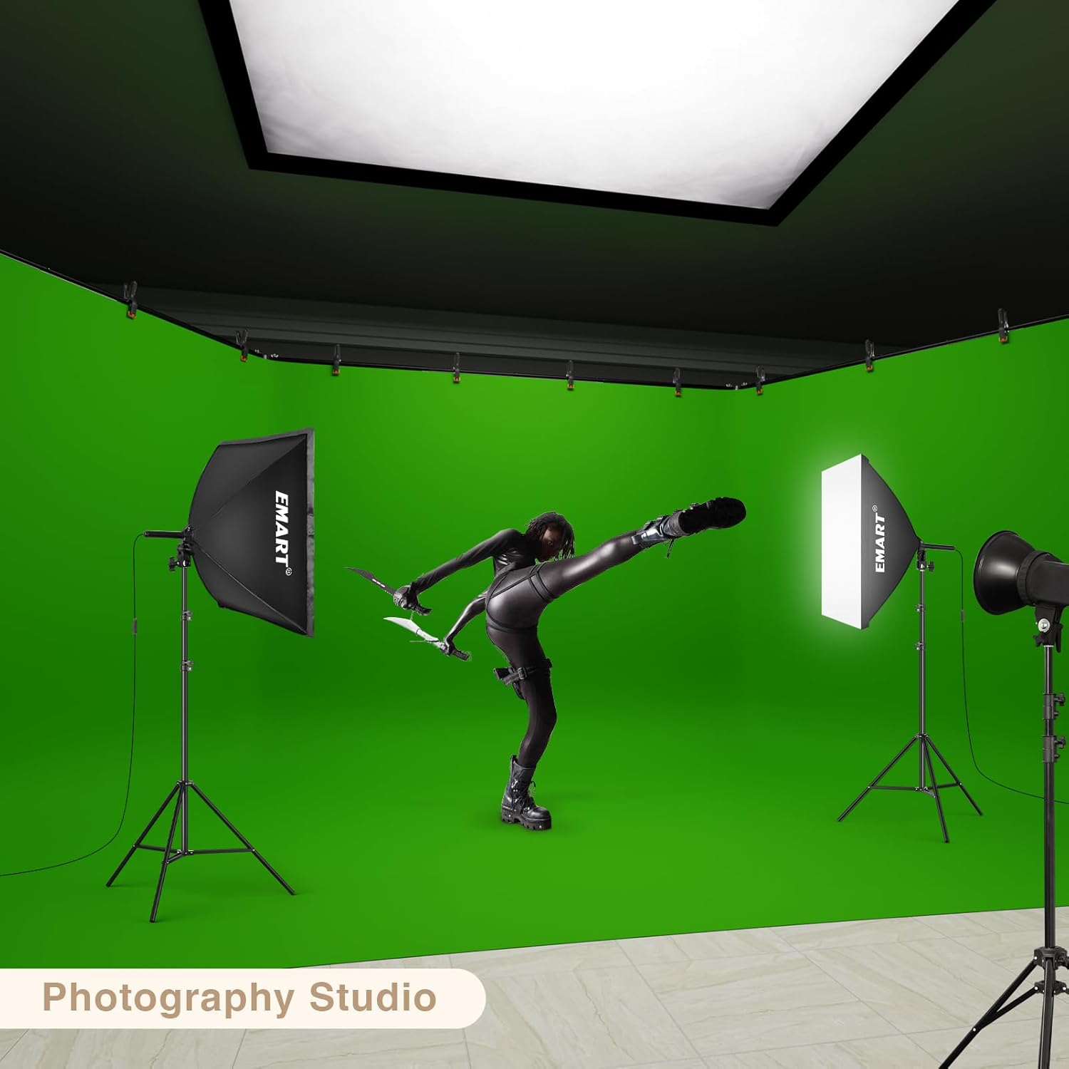 EMART Backdrop Stand, 30x7ft(WxH) Large Adjustable Background Support System with 308° Angle Rotatable Connector, 12 Clamps, 4 Sandbags and Carry Bag for Paties, Wedding, Photography Studio, Video