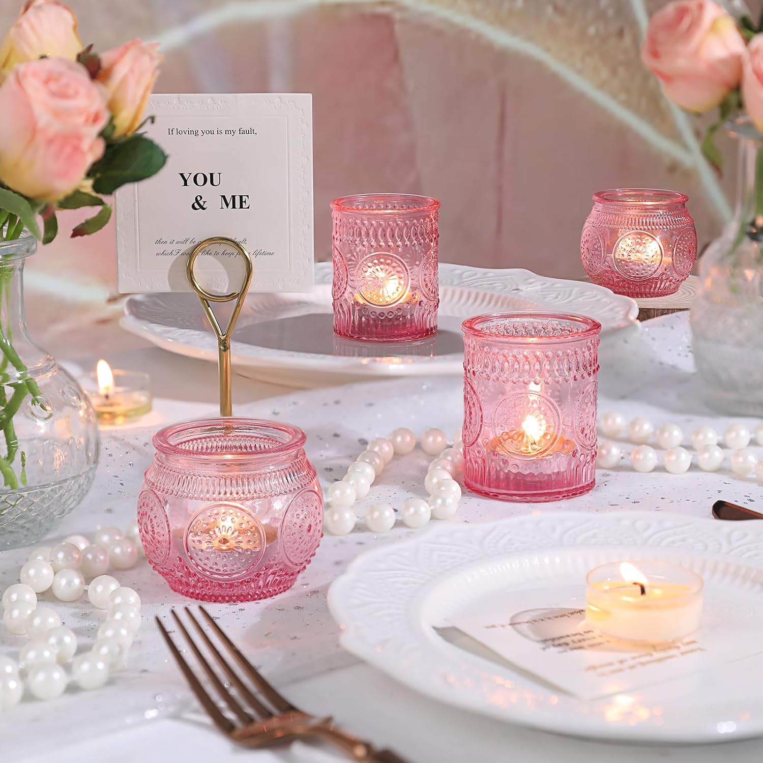 • ❤️❤️[ Votive Candle Holders Set ]❤️❤️: You will get 12 pack pink votive candle holders in your package, including 6 glass votives and 6 bowl glass votives.The dimensions are 2.1ʺD x 2.56ʺH and 2.1ʺD x 2.1ʺH approximately. These glass votive candle holders are the perfect complement to any dining table, which can be used with regular votive candles, tea light candles, flameless LED tea waxes, and edible butter candles, creating a warm and inviting ambiance that enhances the dining experience.