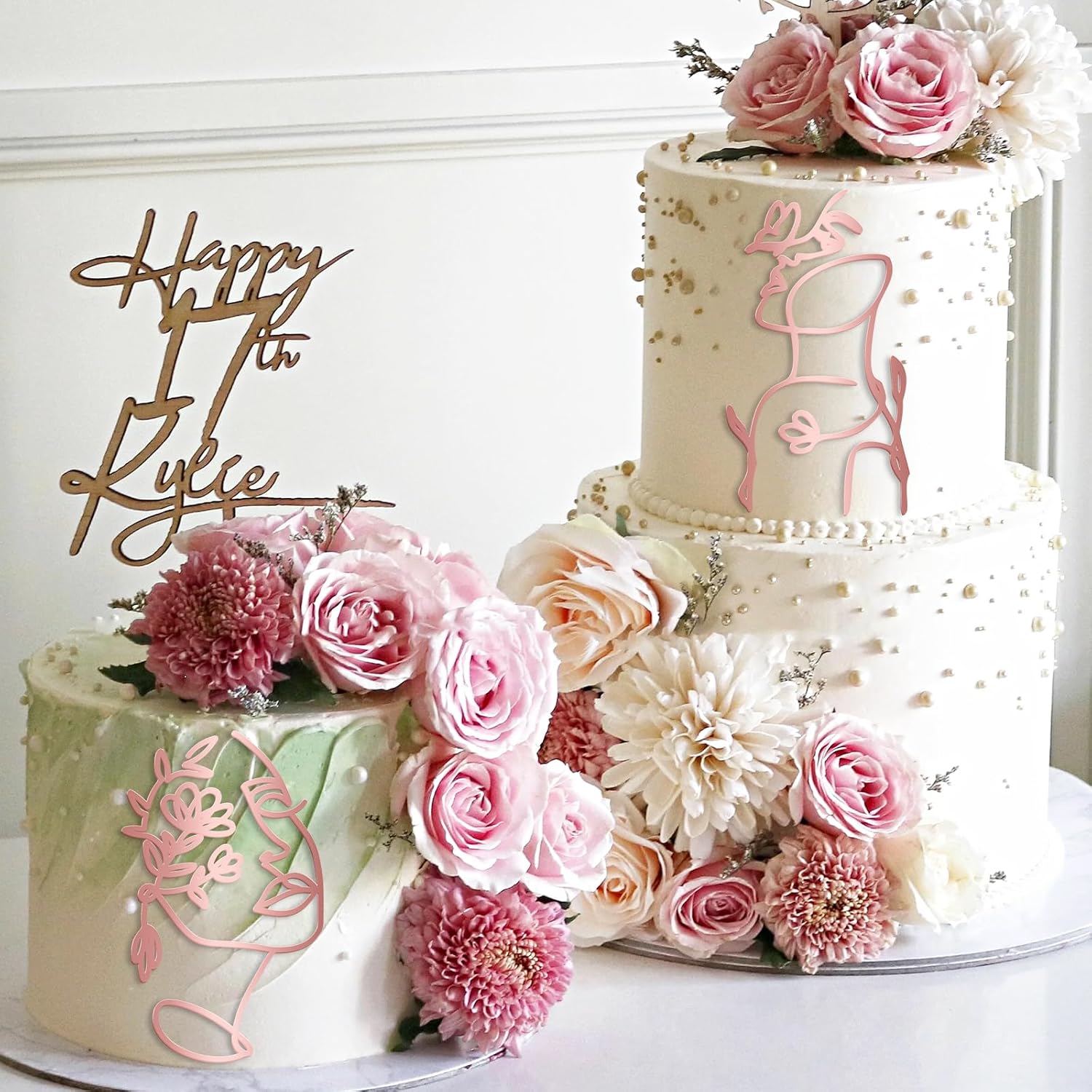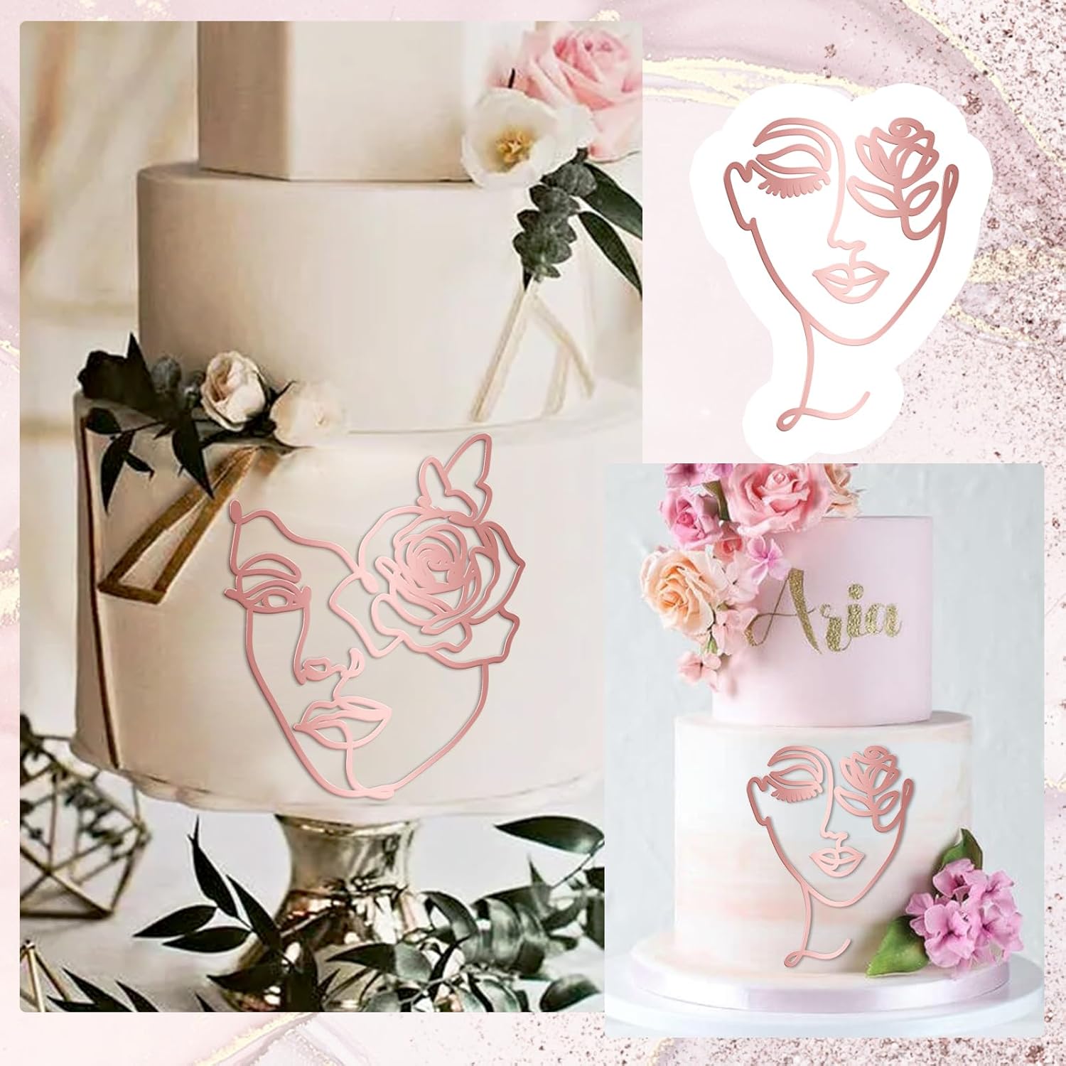 12 Pcs Acrylic Lady Face Cake Topper Minimalist Art Happy Birthday Cake Toppers Women Wedding Cake Decoration for Wedding Birthday Party (Rose gold)