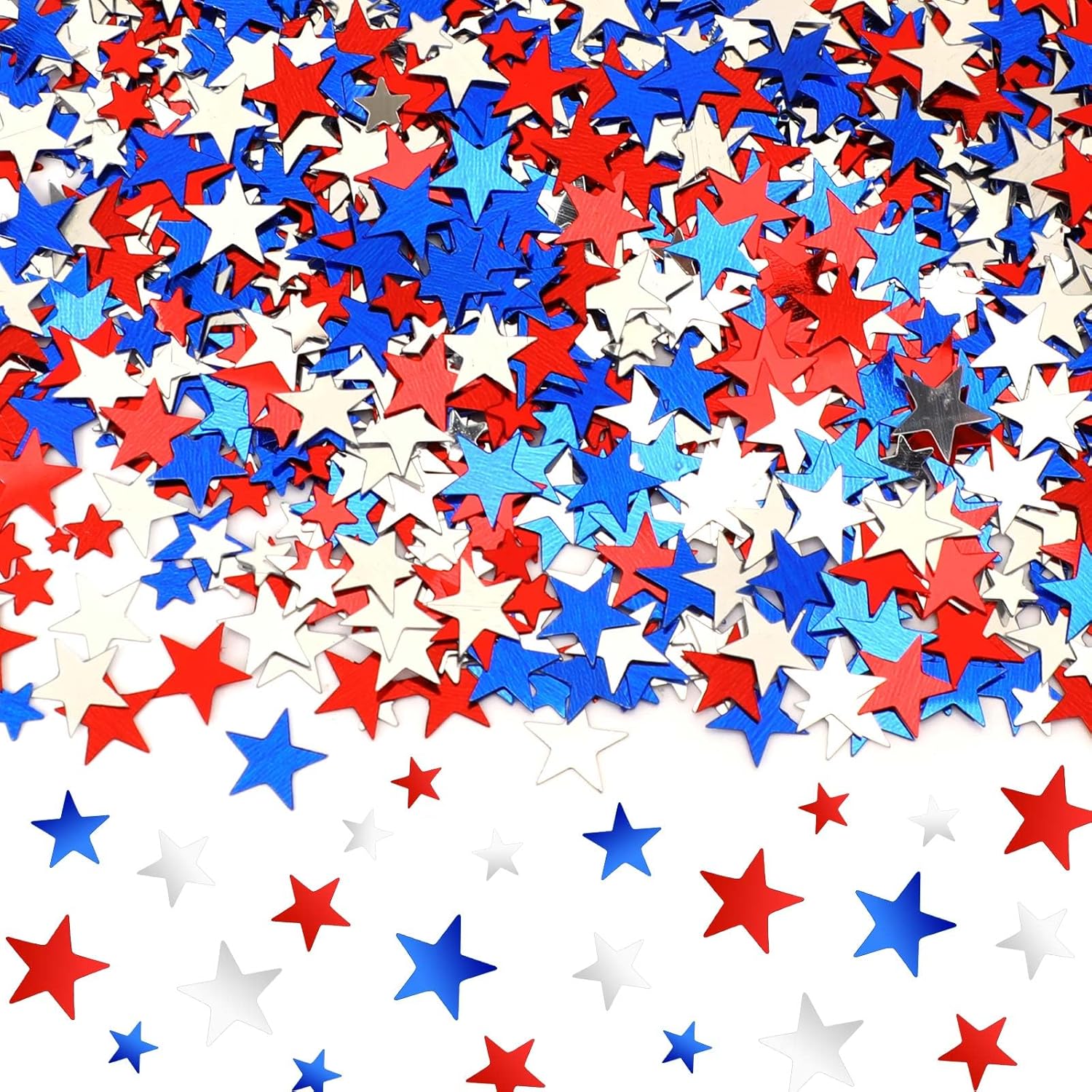 MARFOREVER 4th of July Confetti, Red White and Blue Confetti Table Decorations Glitter Patriotic Scatter Independence Day Star Sprinkles for Fourth of July Memorial Day Party Supplies