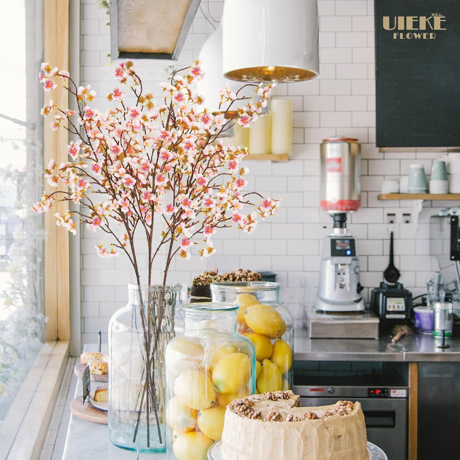 • GOOD THICKNESS: This silk cherry blossom branches have full color and rich layers. Silk cherry blossom petals are dense in quantity. Flower petals are thin and transparent very strong. Uieke follows the beauty of the natural form of flowers, each petals is naturally curled.