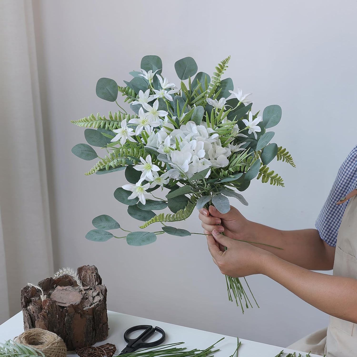• 【Quality materials】: The leaves and flowers are made of quality silk and plastic, and the stems are made of wire, so you can bend or cut them as needed. These eucalyptus leaf stems and artificial flowers are made of quality materials that are durable enough that you don't have to worry about wilting or fading or spend time watering and caring for them.