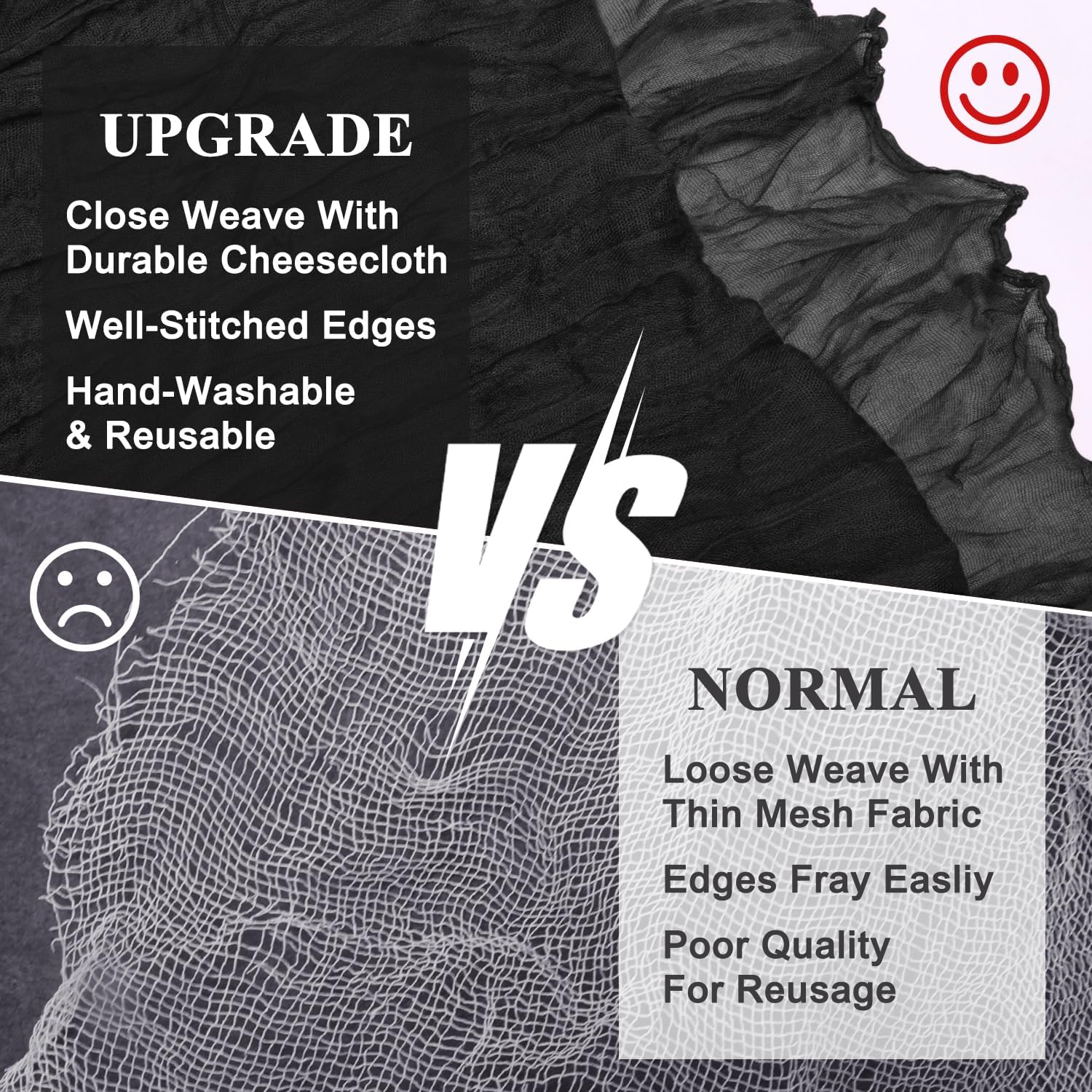 Asee'm Cheesecloth Table Runner 120 Inches Long Black Boho Gauze Cheese Cloth Runner 10FT Rustic Sheer Fall Table Runners for Thanksgiving Wedding Party Baby Shower Decoration
