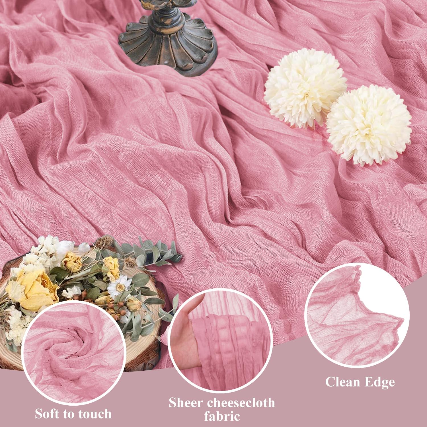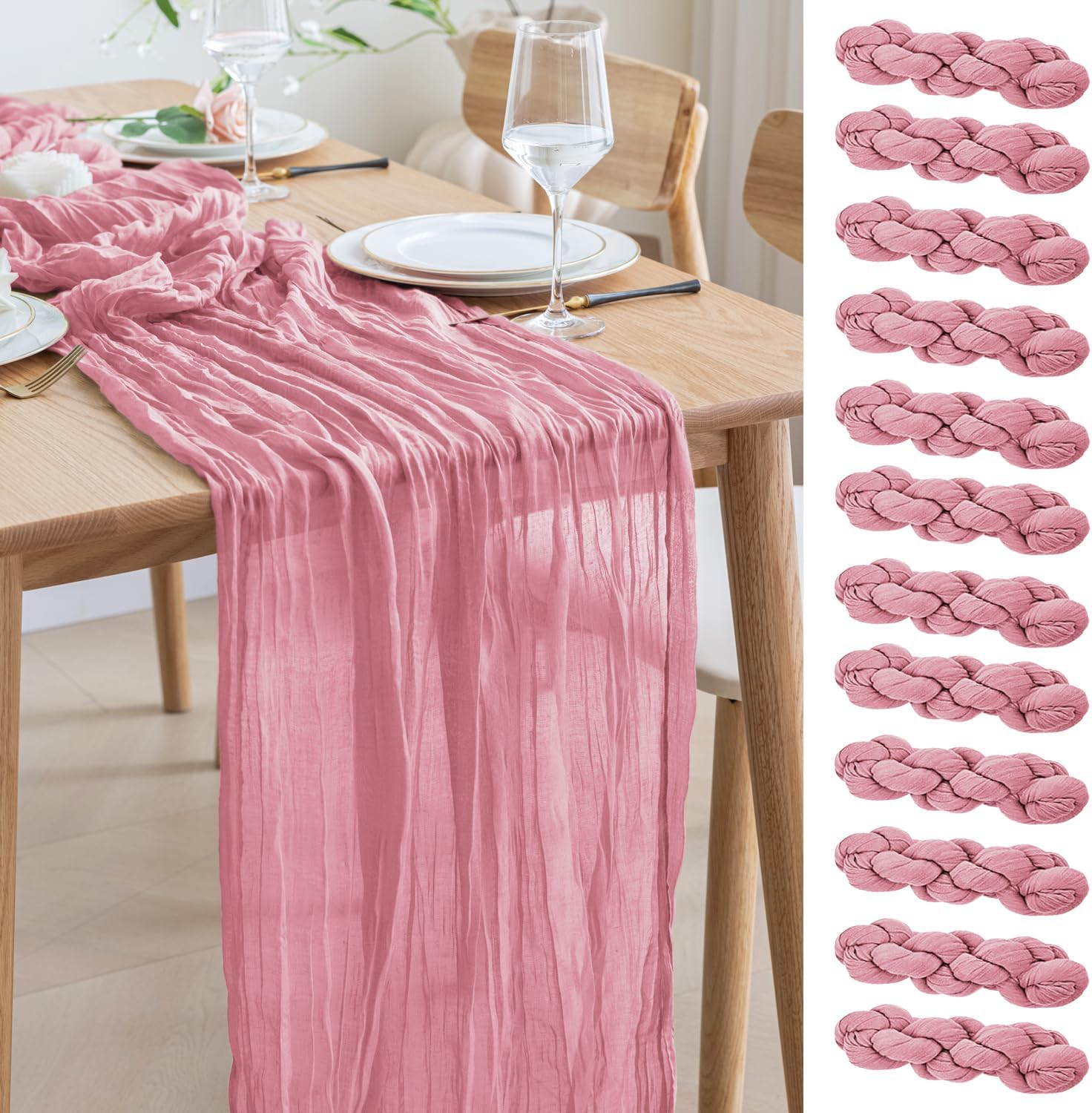 Asee'm 12pcs Cheesecloth Table Runner 120 Inches Long Pink Boho Gauze Cheese Cloth Runner 10FT Rustic Sheer Table Runners for Christmas Wedding Party Baby Shower Spring Easter Decoration