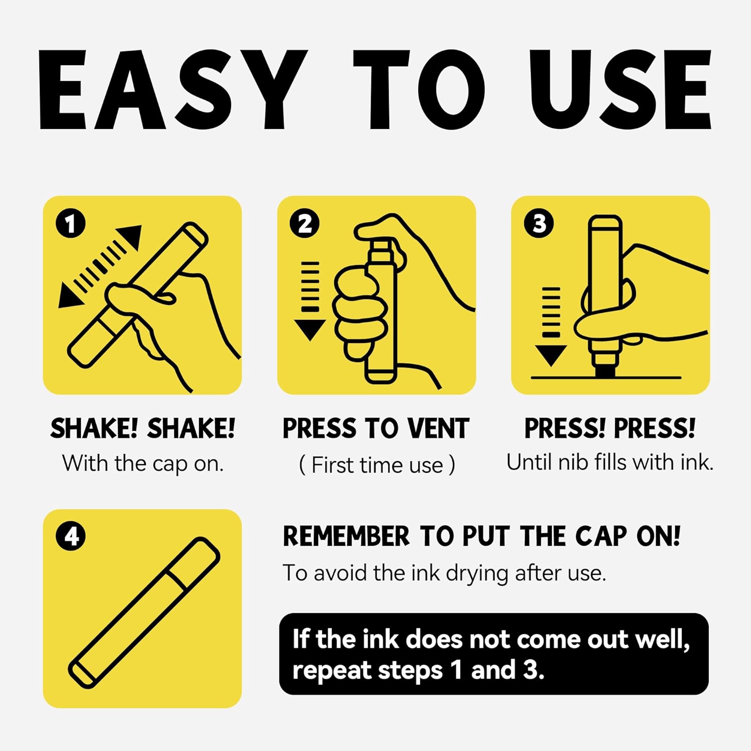• 3-IN-1 NIB: (fine, medium, and jumbo) The thick tip permanent markers set felt wide tip is not only equipped with 3-IN-1 nib, but also allows the jumbo marker paint pen to produce smooth and even ink
