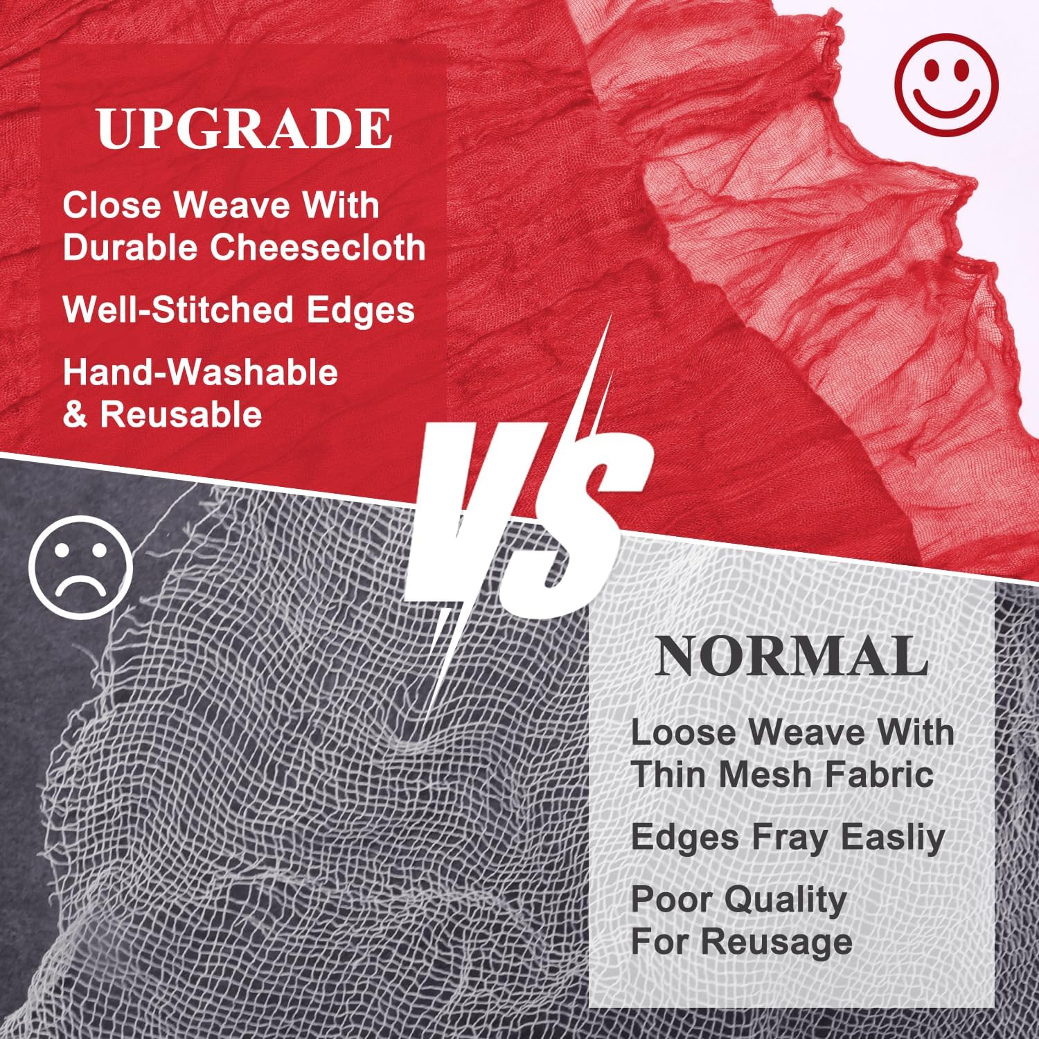 Asee'm 12PCS Fall Table Runner Cheesecloth 10FT Red Boho Gauze Fabric Rustic Sheer Cheese Cloth Runners for Thanksgiving Christmas Wedding Bridal Shower Party