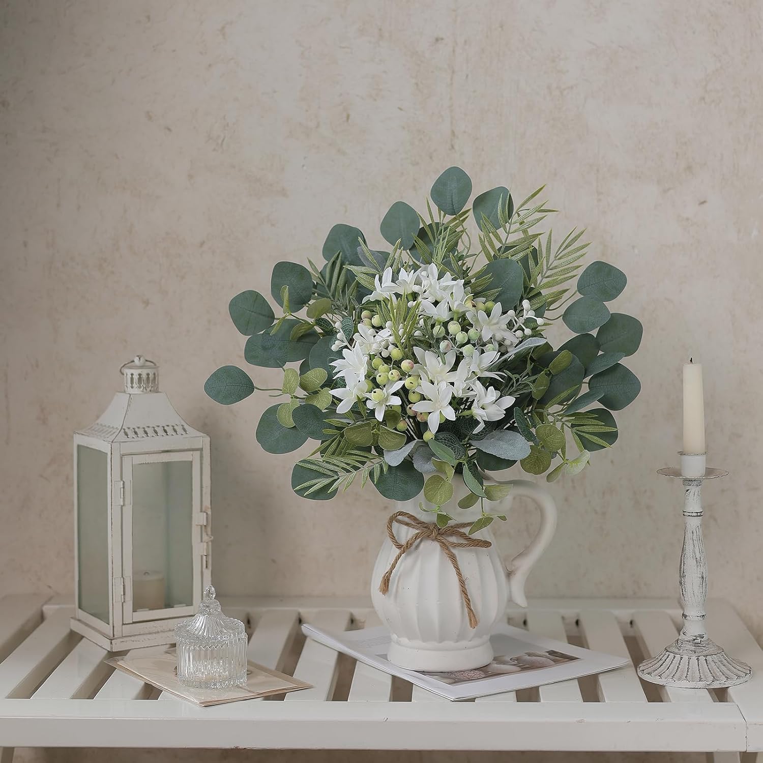 • 【Quality materials】: The leaves and flowers are made of quality silk and plastic, and the stems are made of wire, so you can bend or cut them as needed. These eucalyptus leaf stems and artificial flowers are made of quality materials that are durable enough that you don't have to worry about wilting or fading or spend time watering and caring for them.