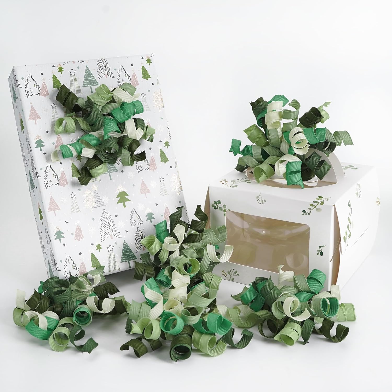• SIZE & PACK: Each package contains 6 pcs mixed color sage green/ivory/light green/moss green curly bows are made of 12 strands of 3/8"(9mm) wide grosgrain ribbon that measure about 4.5~5" x 4.5~5"