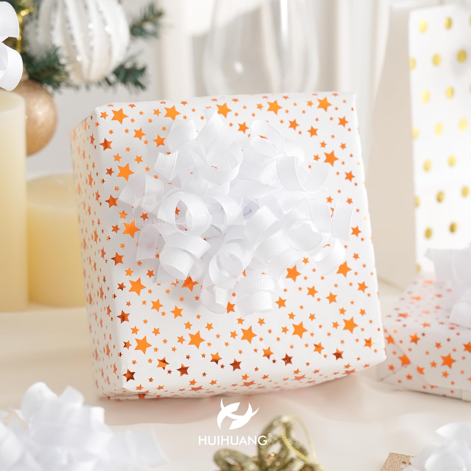 HUIHUANG White Bows for Gift Wrapping, White Curly Ribbon Bows Self Adhesive Burst Gift Bow for Christmas Presents, Wine Bottle, Treat Bags, Bridal Shower Wedding Party Favor - 6 Counts