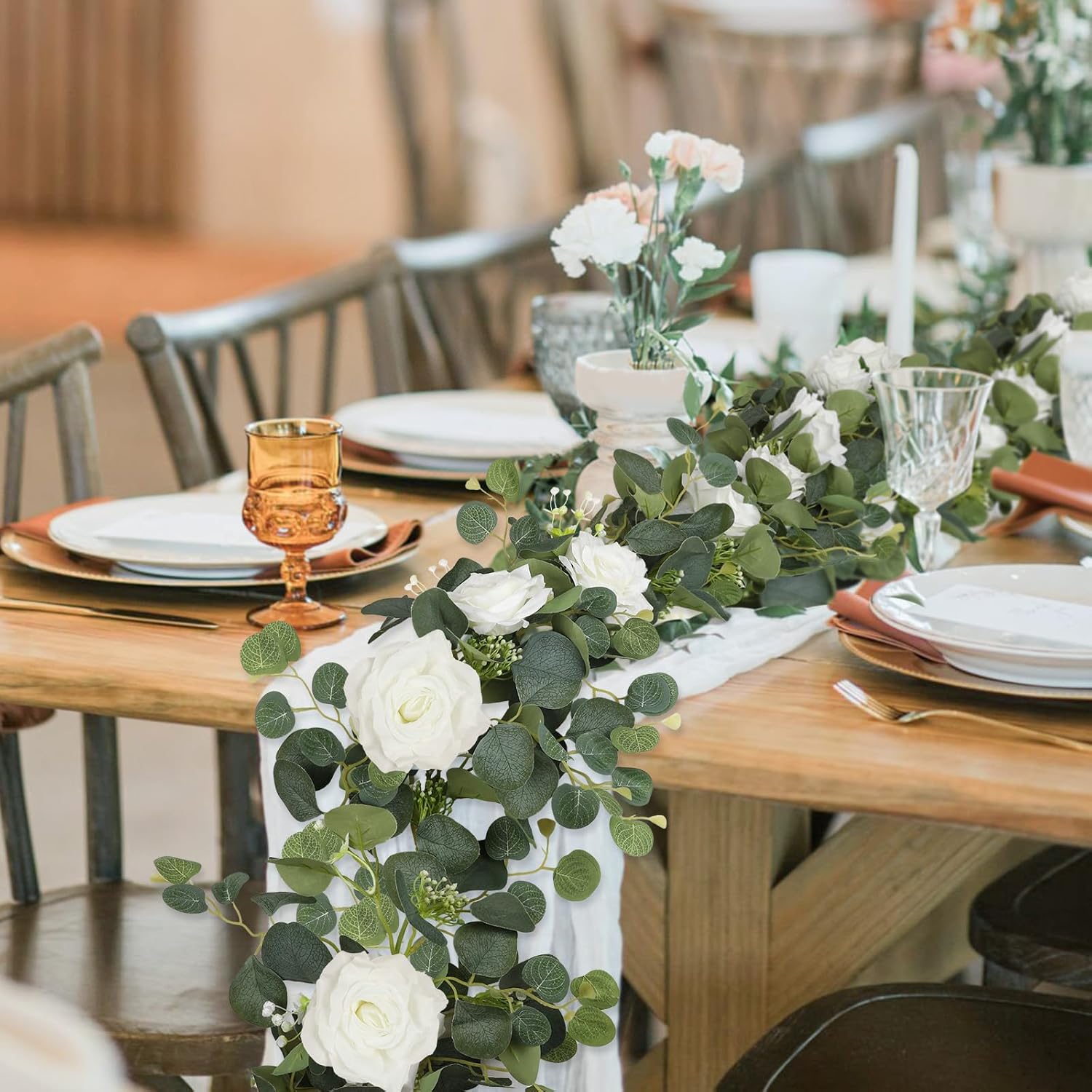 • Versatile Elegance for Every Occasion: Elevate your decor with our 6.6FT eucalyptus garland, a perfect blend of 12 white roses, abundant white gypsophila flowers, and lush artificial greenery. Ideal for wedding arch, table centerpieces, fireplace mantel, backdrops, or outdoor garden fences. Whether it’s a wedding, Mothers Day, or seasonal celebration, this garland brings timeless beauty to your space