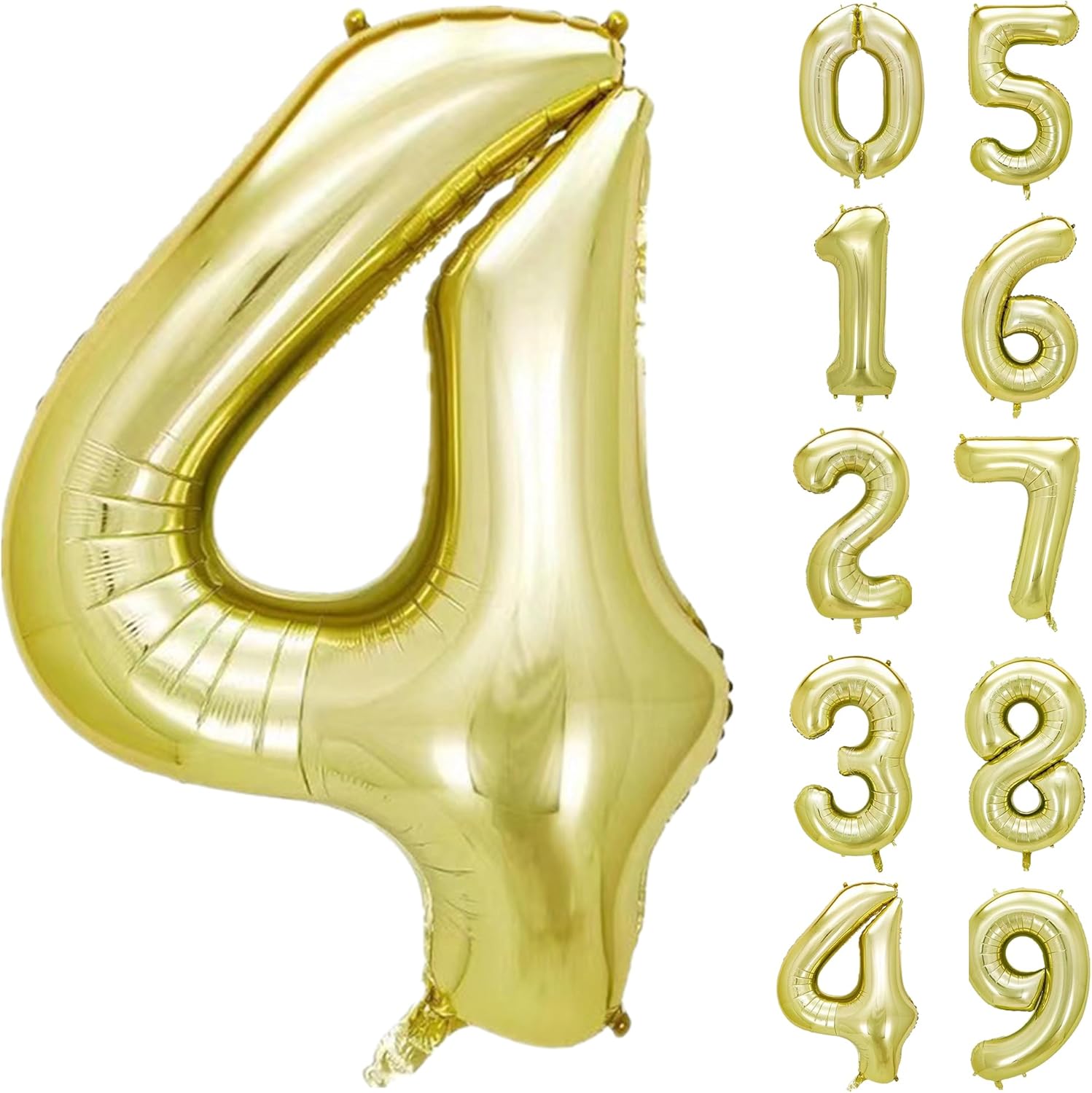 40 Inch Numbers 4 Light Gold Large Balloon Digital 4 for Birthday Party, 0-9 Birthday Party Decorations,Foil Mylar Big Number 4 Wedding Graduations Photo Shoot Decorations(Number 4)