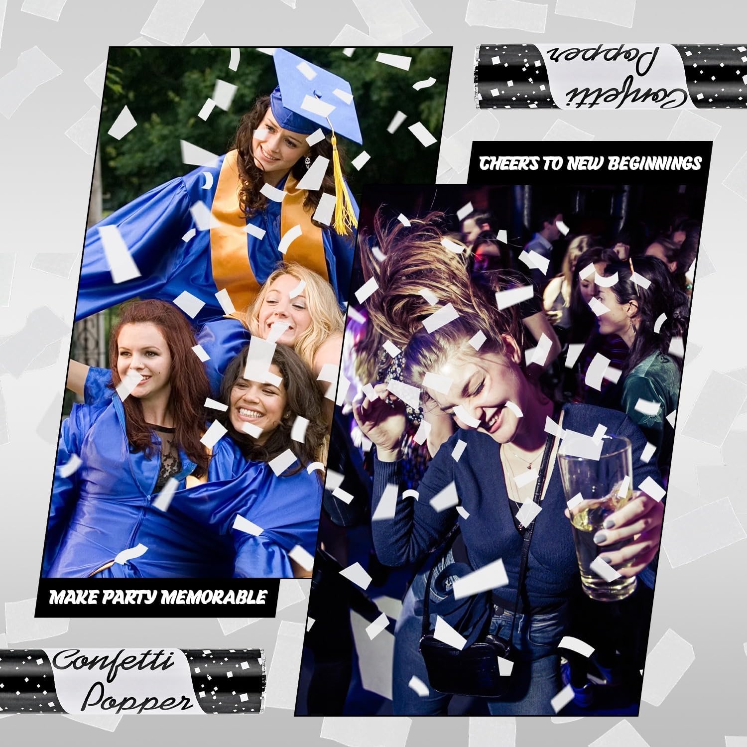 • 【Safe and Fun White Confetti Poppers】 Enjoy popping our White confetti poppers, made with safe, non-toxic materials. Our high-quality confetti cannons are safe for indoor and outdoor use, ensuring a wonderful and worry-free party experience for you and your guests.
