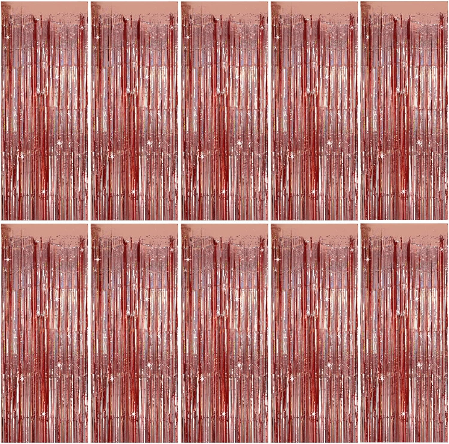 Tinsel Curtain Party Backdrop Rose Gold Birthday Decorations 10 Packs Glitter Foil Fringe Curtain Party Decor Streamers Photo Booth for Birthday Christmas Wedding Halloween Graduation Decoration