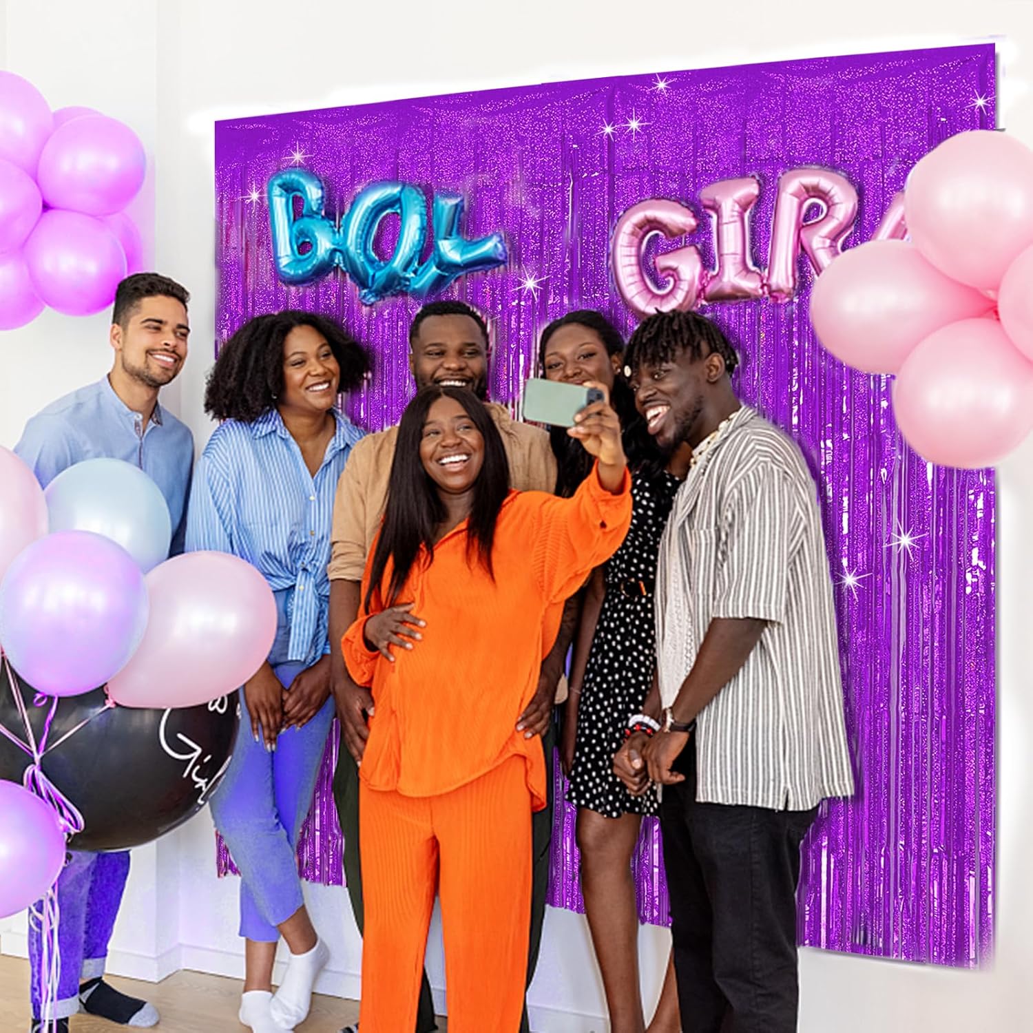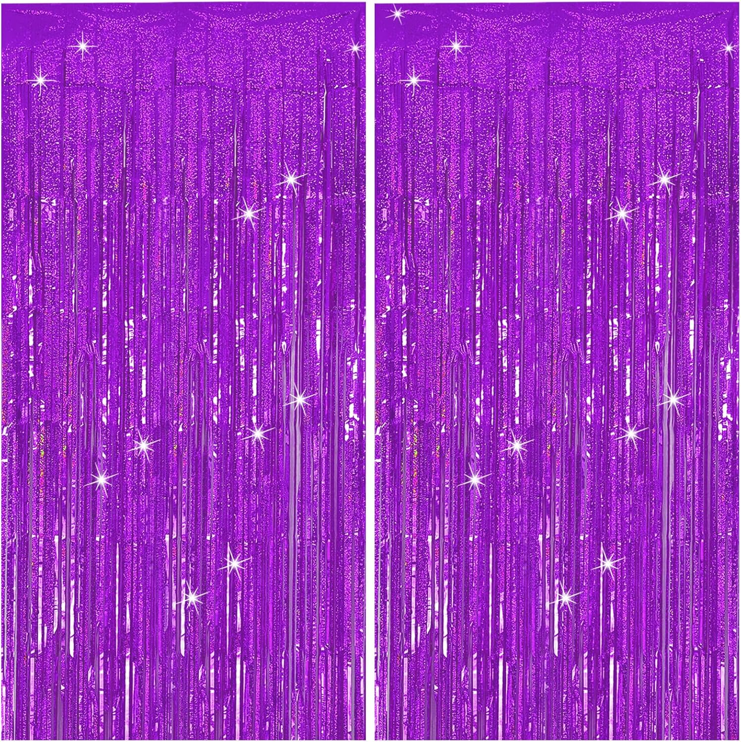 Tinsel Curtain Party Backdrop Purple Birthday Decorations 2 Packs Glitter Foil Fringe Curtain Party Decor Streamers Photo Booth for Birthday Christmas Wedding Halloween Graduation Decorations