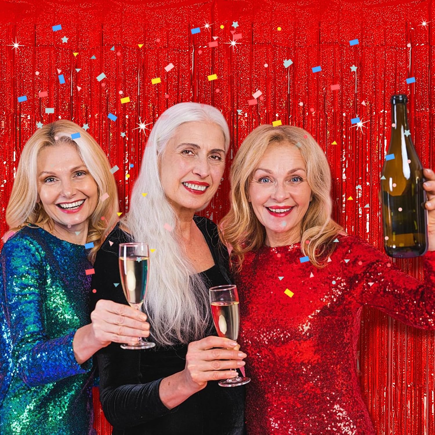 • Material: This tinsel backdrop is made of high-quality shiny tinsel. Metallic streamers are available in a variety of beautiful colors with a shiny, iridescent, and reflective surface that creates an eye-catching and mesmerizing effect. Sparkle and bling will definitely create a shiny nice atmosphere for your party.