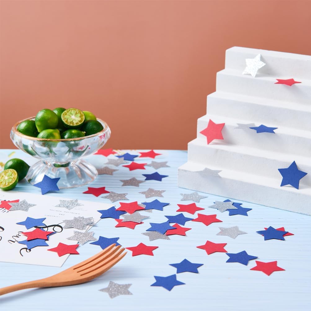 • Silver Blue and Red Star Confetti 200 counts stars confetti,each star 1.2'' in diameter,high quality craft paper confetti