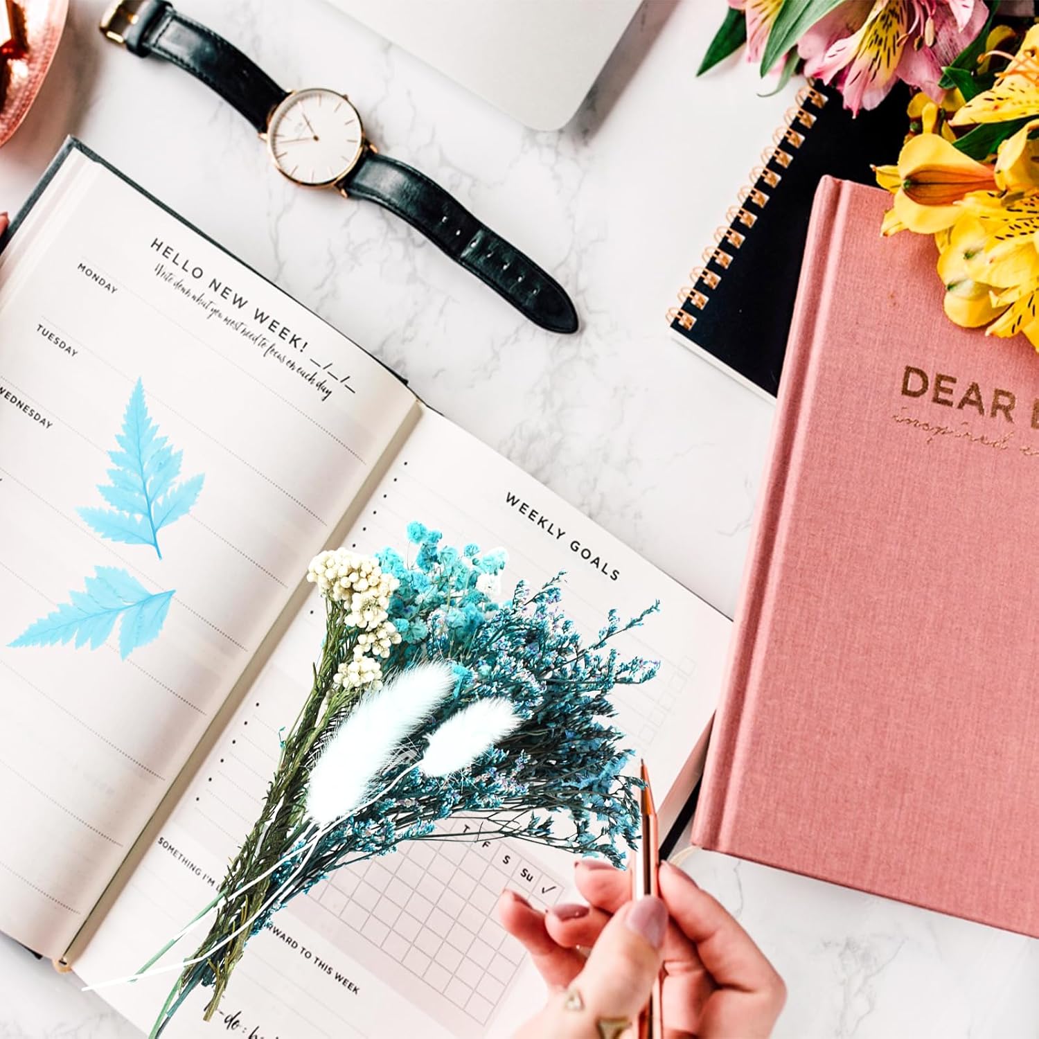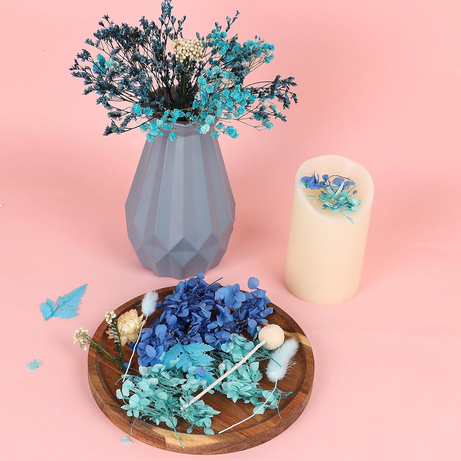 Dried Flowers,Dried Flowers Set for DIY Scrapbook Accessories Flower Arrangements Flower Decoration Wedding Decoration(Blue)
