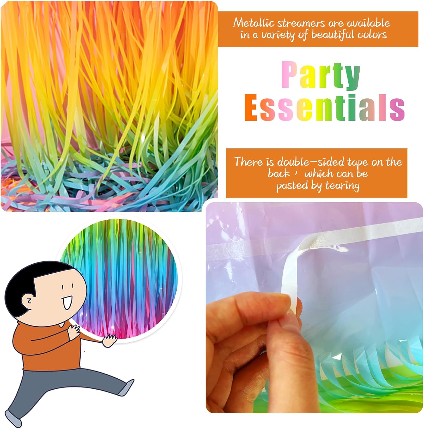 • Rainbow Birthday Decorations:3 packs rainbow streamers, the size of the foil curtain is 3.28 ft x 6.56 ft.It's long enough to fit any occasion. Please do not stick the foil curtain on uneven or stained walls to prevent it from falling off.