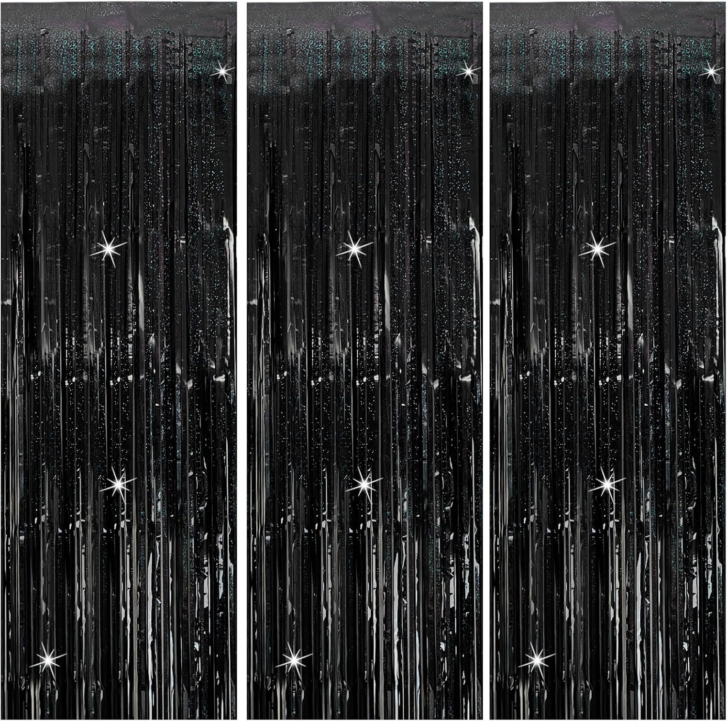 3 Pack Black Party Streamers Backdrop Tinsel Foil Fringe Curtains Halloween Party Decorations Birthday Wednesday Party Decorations Graduation Halloween Decor Party Supplies