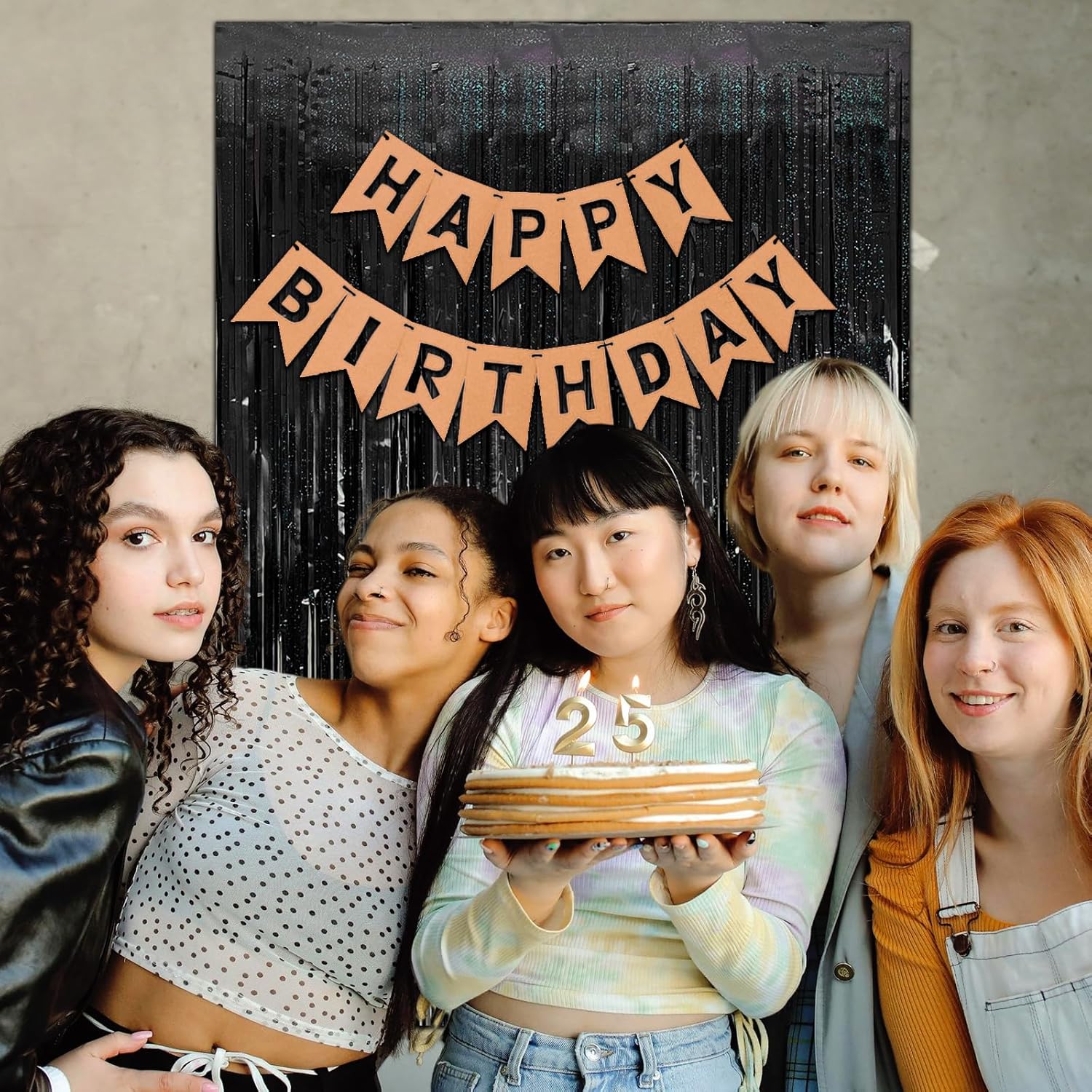 • Black Birthday Decorations:The back of fringe curtain has double-sided tape, which can be stuck very firmly to any place you want such as walls, tables, door frames. You can use scissors to cut the length you want, and you can use two or more pieces of the curtain to splice and overlap.