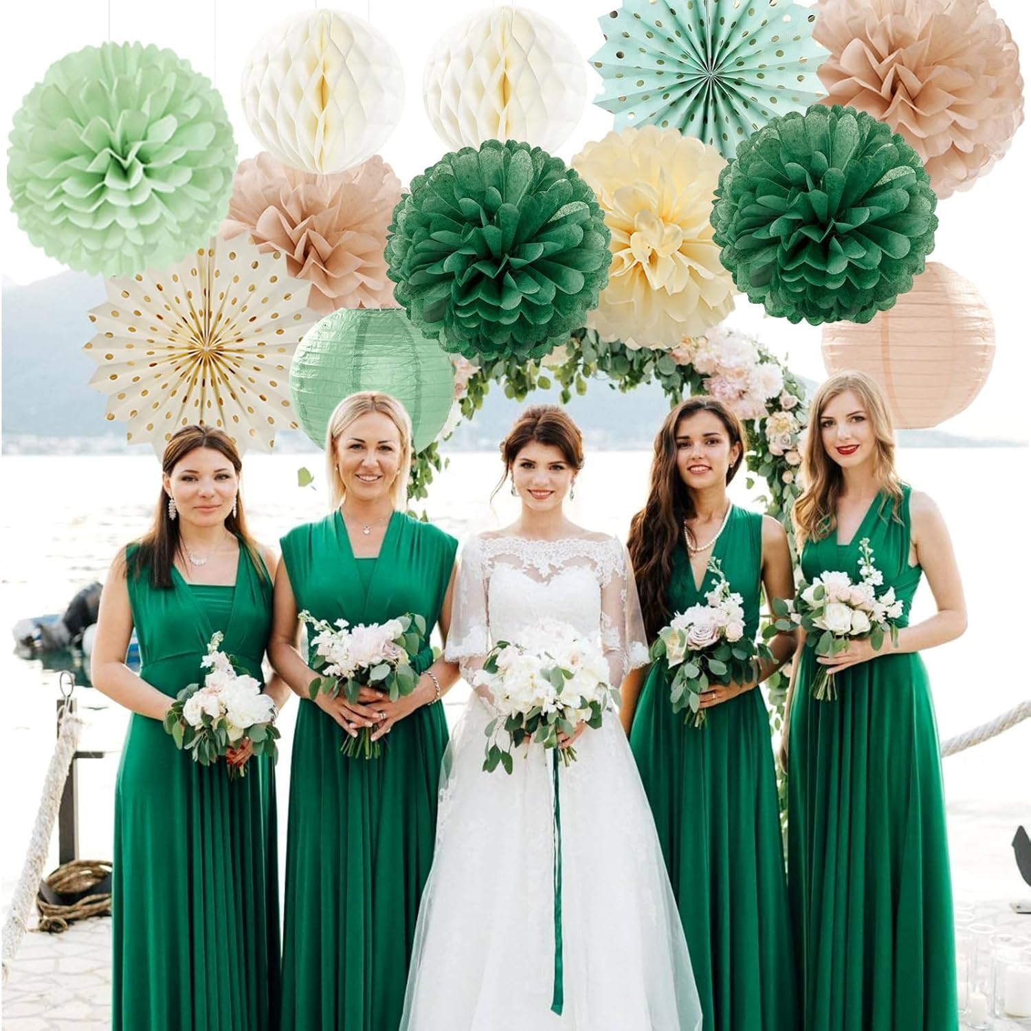 • 【Package Contains】The olive sage green beige champagne gold ivory party kits include 6pcs tissue paper flowers: 3pcs 10" and 3pcs 12" in three color, 2pcs 8inch paper honeycom ball,4pcs 8inch paper lantern, 2pcs 12inch paper fan.