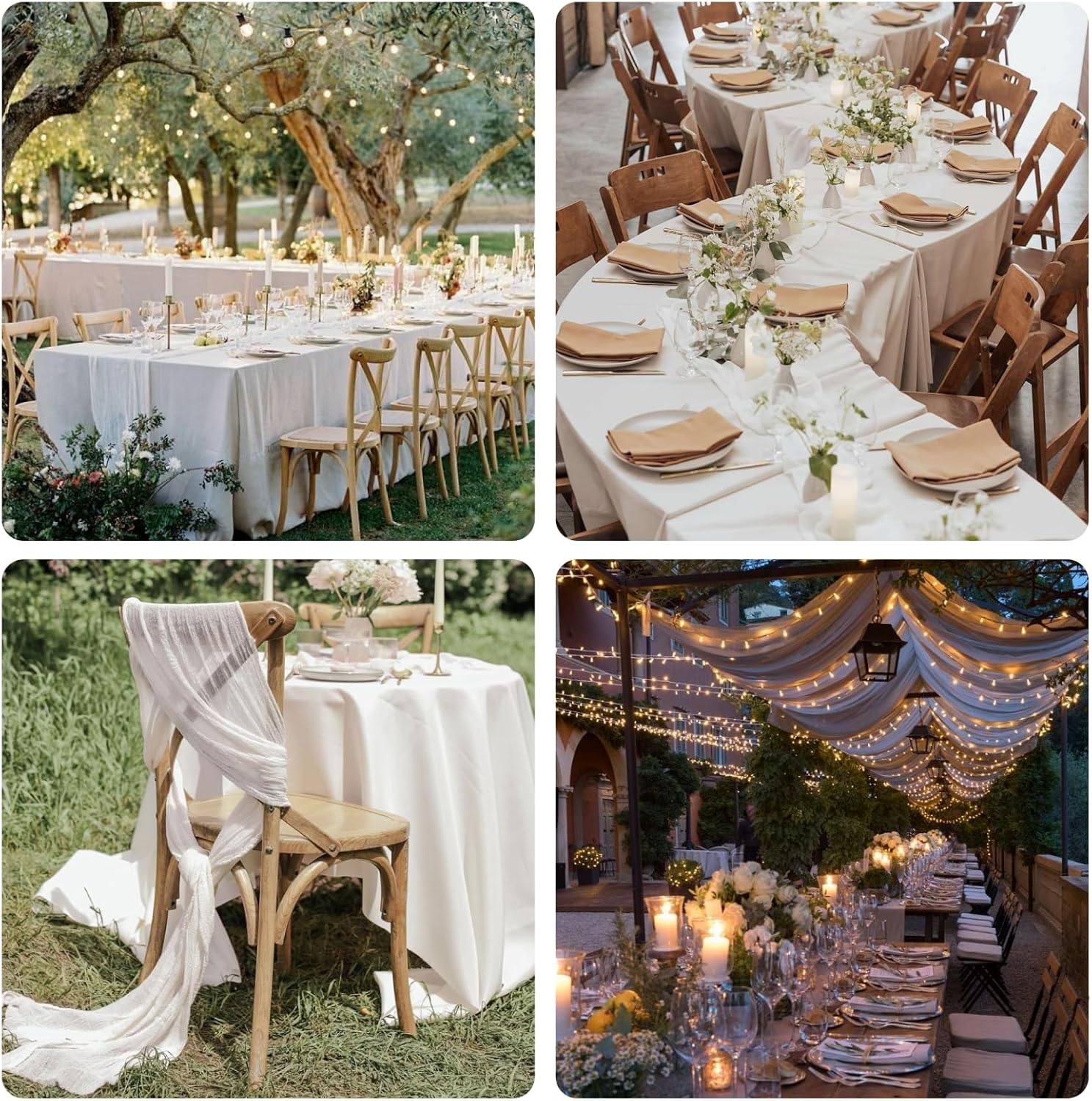 • 【Diversified Use】Boho cheesecloth Table Runner is necessary choice for beautifying tables. It's used for home decor, outdoor events, formal and informal setting in all seasons. Such as wedding decor, baby shower, bridal showers, parties, engagement banquet, Valentine's Day, Thanksgiving, Christmas.