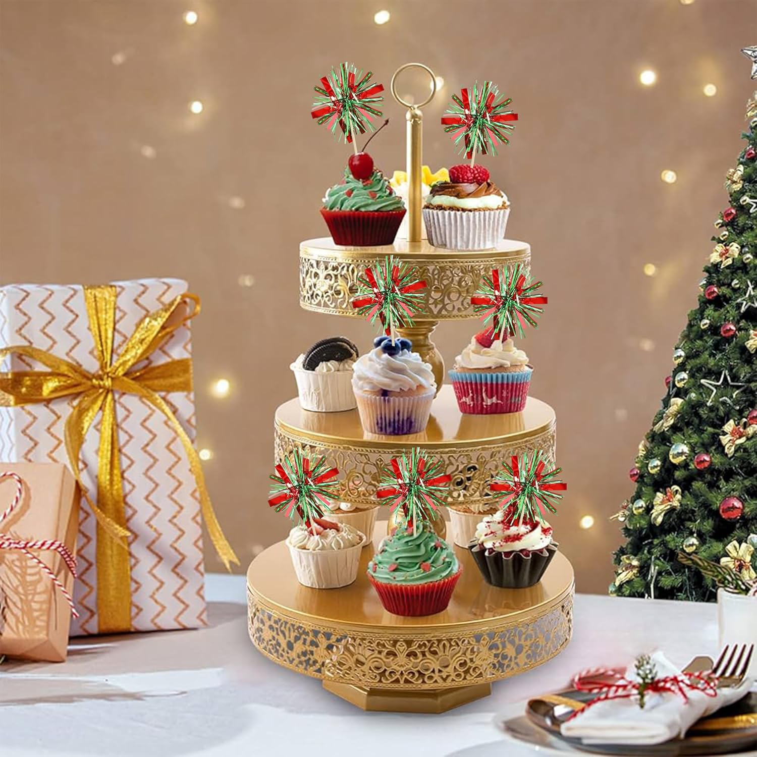 • -Premium Material: These Foil Firework Cupcake Toppers are made of high quality foil and food-grade toothpick, very safe to put them on cakes, cupcakes, ice cream, fruits, pie, dessert, cheese or any dish and food appetizer you want to decorate.
