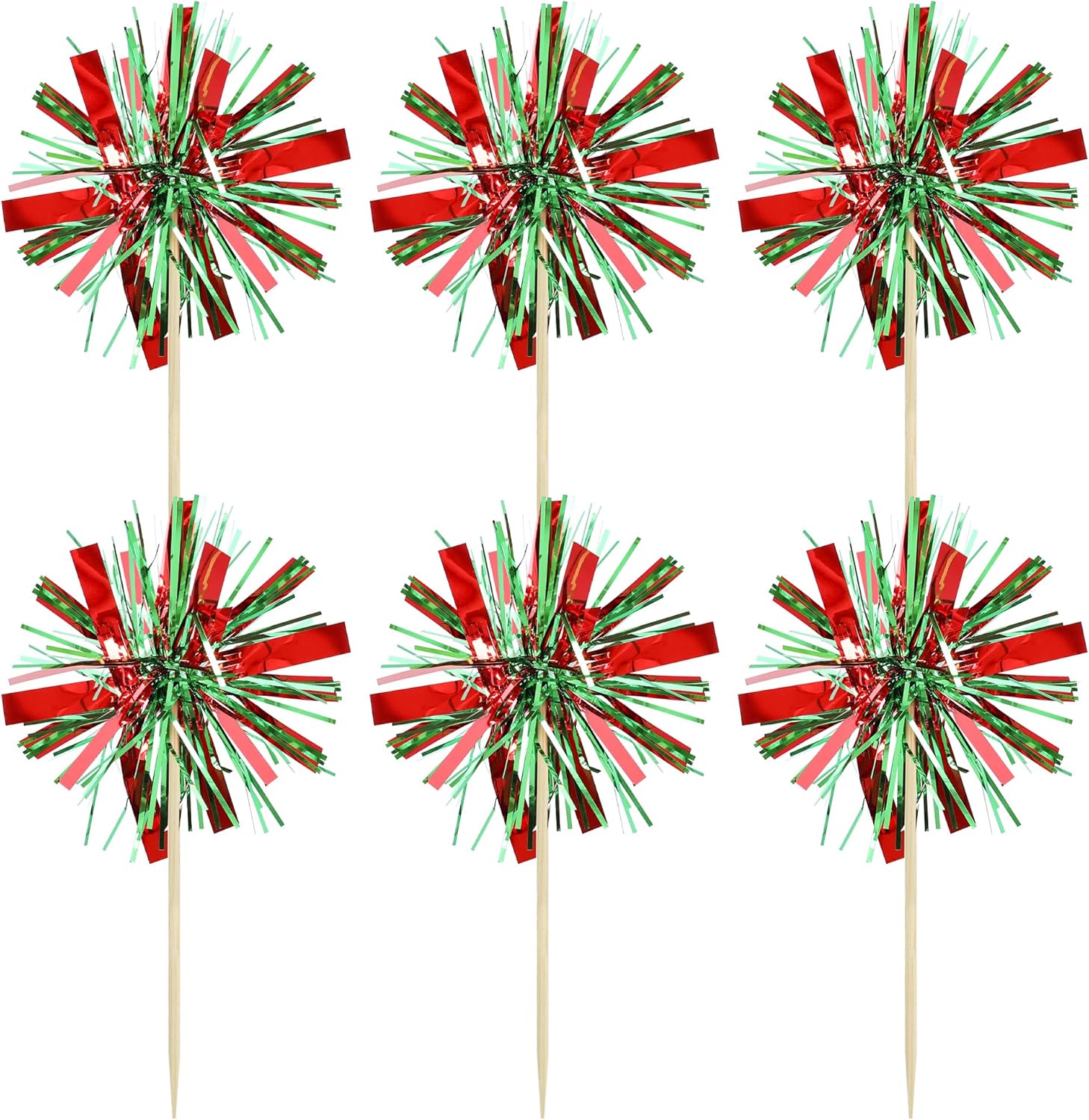 Gyufise 20Pcs Foil Firework Cupcake Toppers Happy Birthday Cake Toppers Tinsel Flower Drink Stirrers Cocktail Food Fruit Toothpicks for Valentine's Day Party Birthday Wedding Supplies Green Red