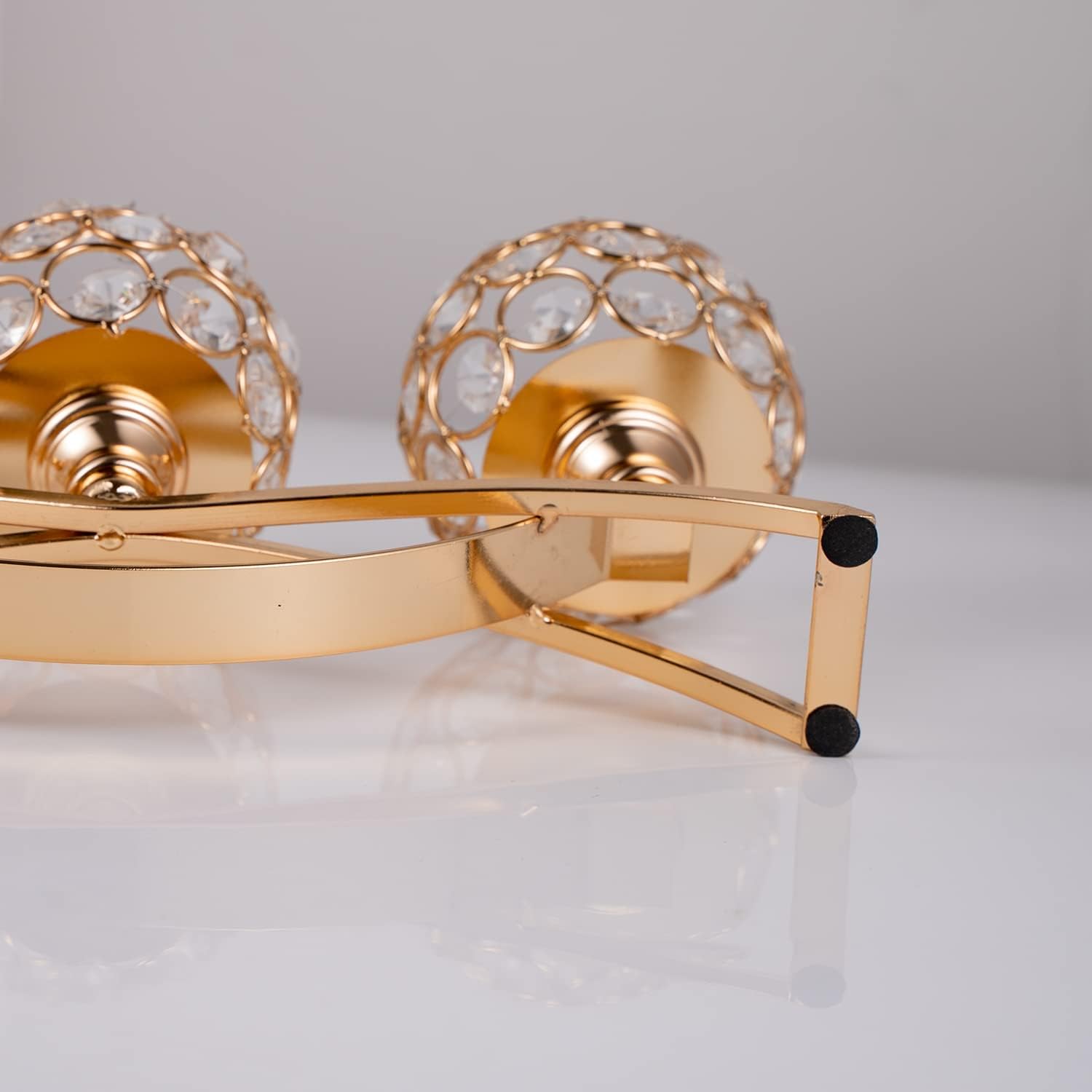 • ❤ Design of the Size:height:3 arm gold crystal candle holders, 14cm/5.51inch, length: 27.5cm/10.82inch. Upper candle cup diameter: 8.35cm/3.34inch, net weight: 0.65kg. Fits candle sizes up to 2.75 inches in diameter.