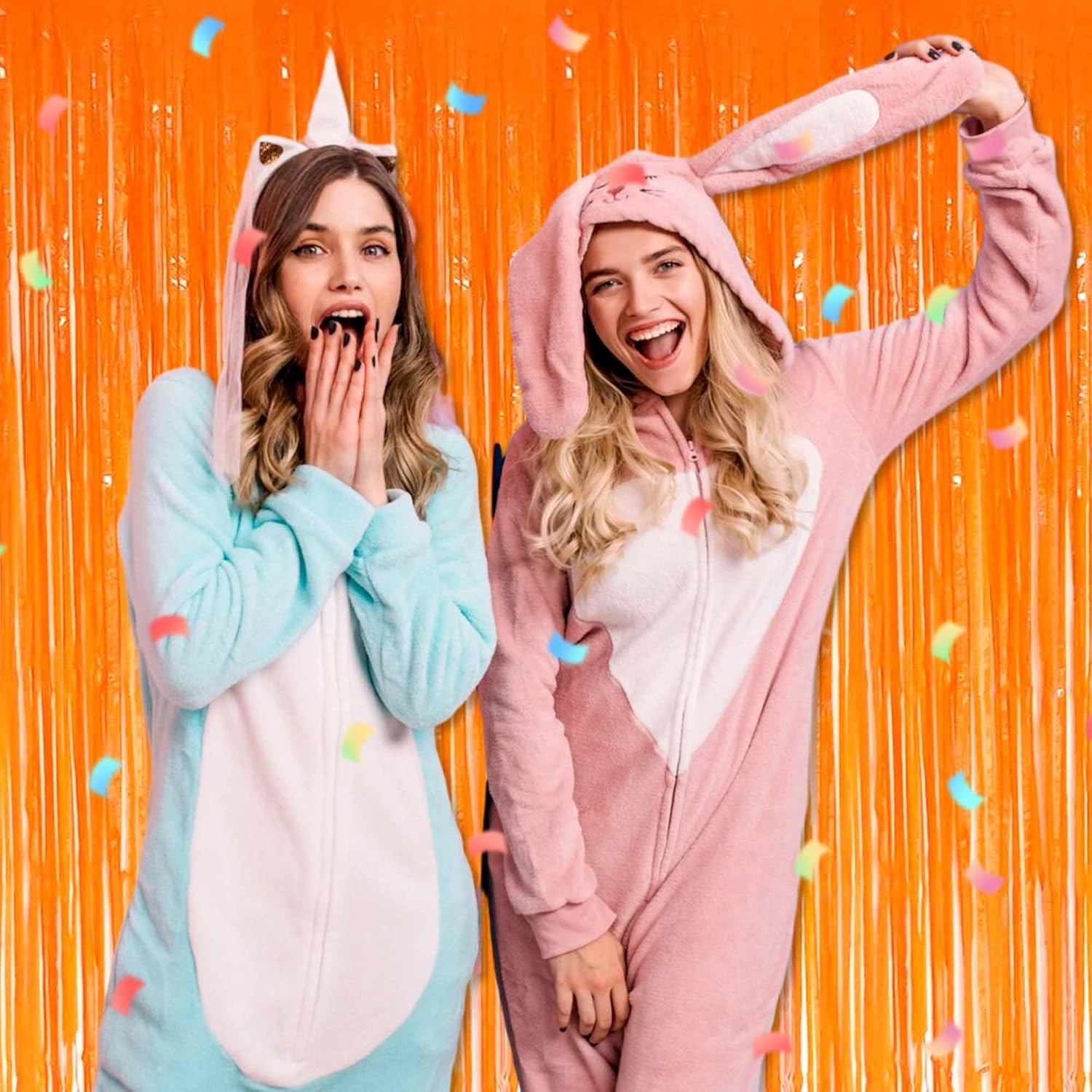 3 Pack Macaron Orange Foil Fringe Curtains Backdrop, 3.28 x 9.8 Ft Metallic Streamers Tinsel Curtains Background for Photo Booth, Birthday, Halloween, Christmas, New Year Party Decorations