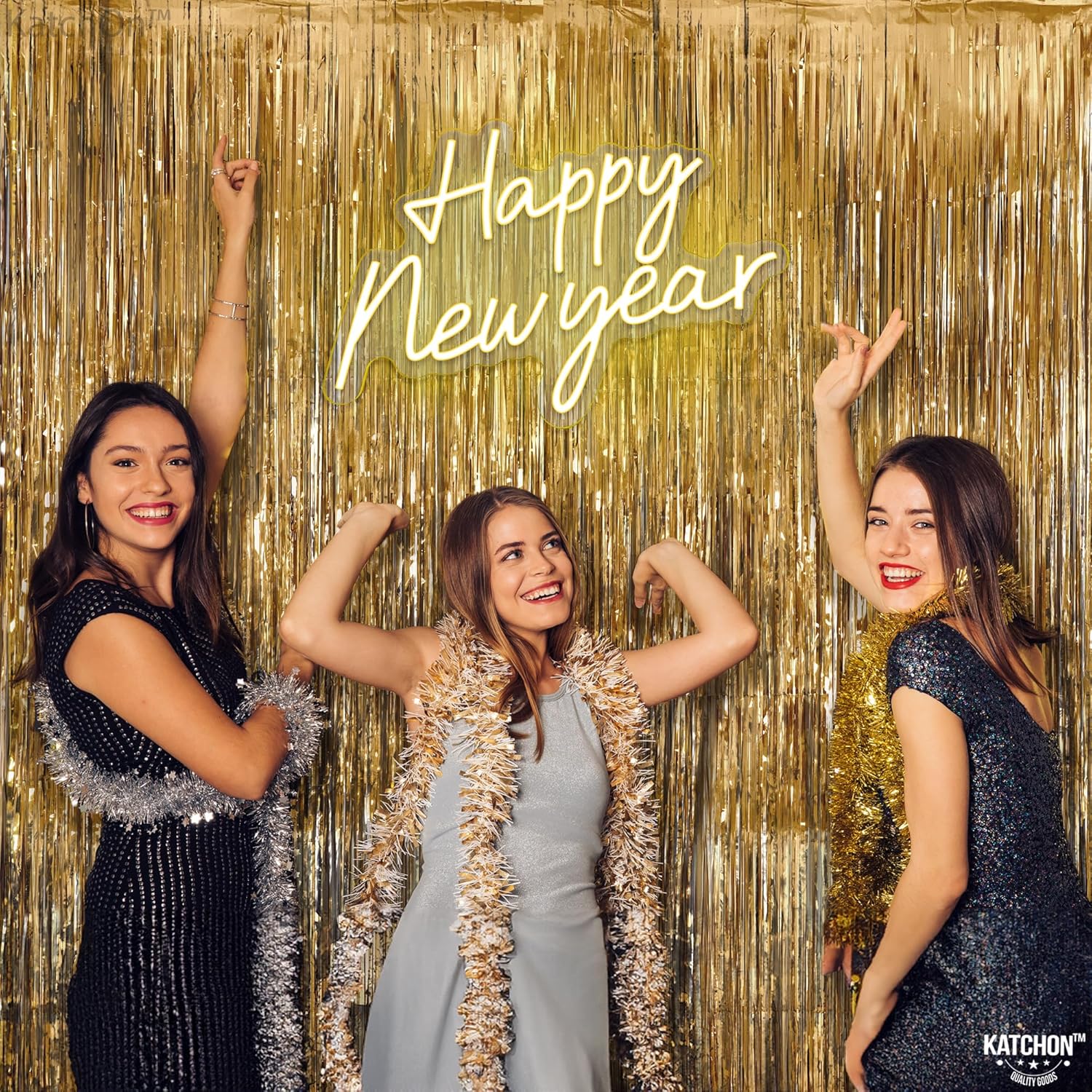 • EASY TO ASSEMBLE | STRONG ADHESIVE: Hanging this classy curtain takes seconds—sticky adhesive strips secure the full fringe wall with no hassle. It doubles as top-tier new years eve party supplies 2026 and offers an irresistible happy new year backdrop, golden birthday decorations for women, metalic gold foil fringe curtain for all your celebrations. Coordinate with new years eve backdrop 2026 props, champagne gold tinsel or introduce a festive new years backdrop to ring in a happy new year 2026 moment that captivates every guest.