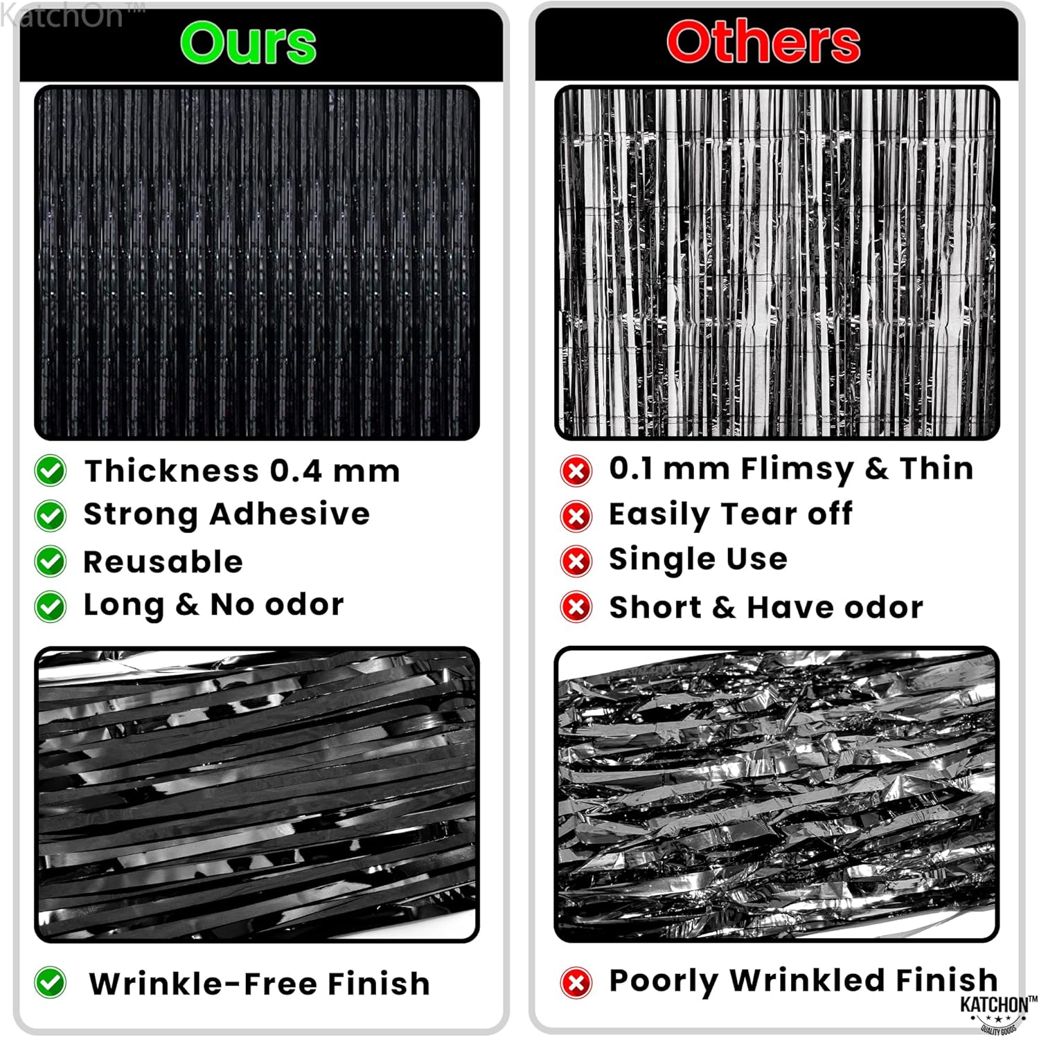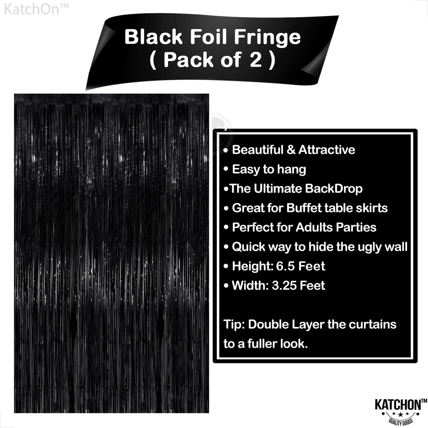 KatchOn Large Black Fringe Backdrop - Pack of 2 | Black Streamers for Halloween Party Decorations | Tinsel Backdrop for Wedding, Anniversary, Engagement, Birthday, Bachelorette Party Decorations