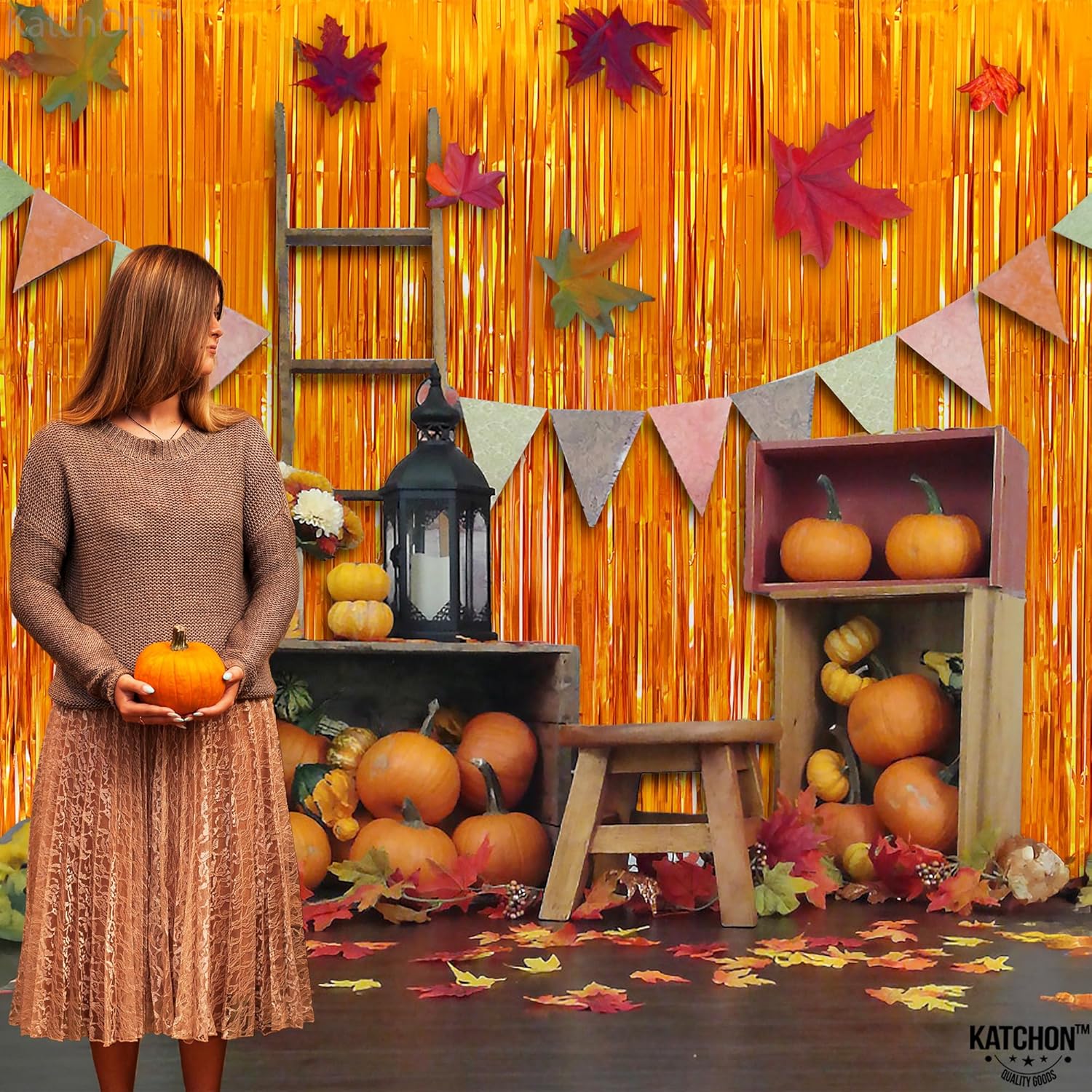 KatchOn, Orange Streamers - Pack of 2 | Orange Fringe Backdrop, Basketball Party Decorations | Tinsel Backdrop for Birthday, BabyShower, Bachelorette, Anniversary, Thanksgiving, Halloween Decorations