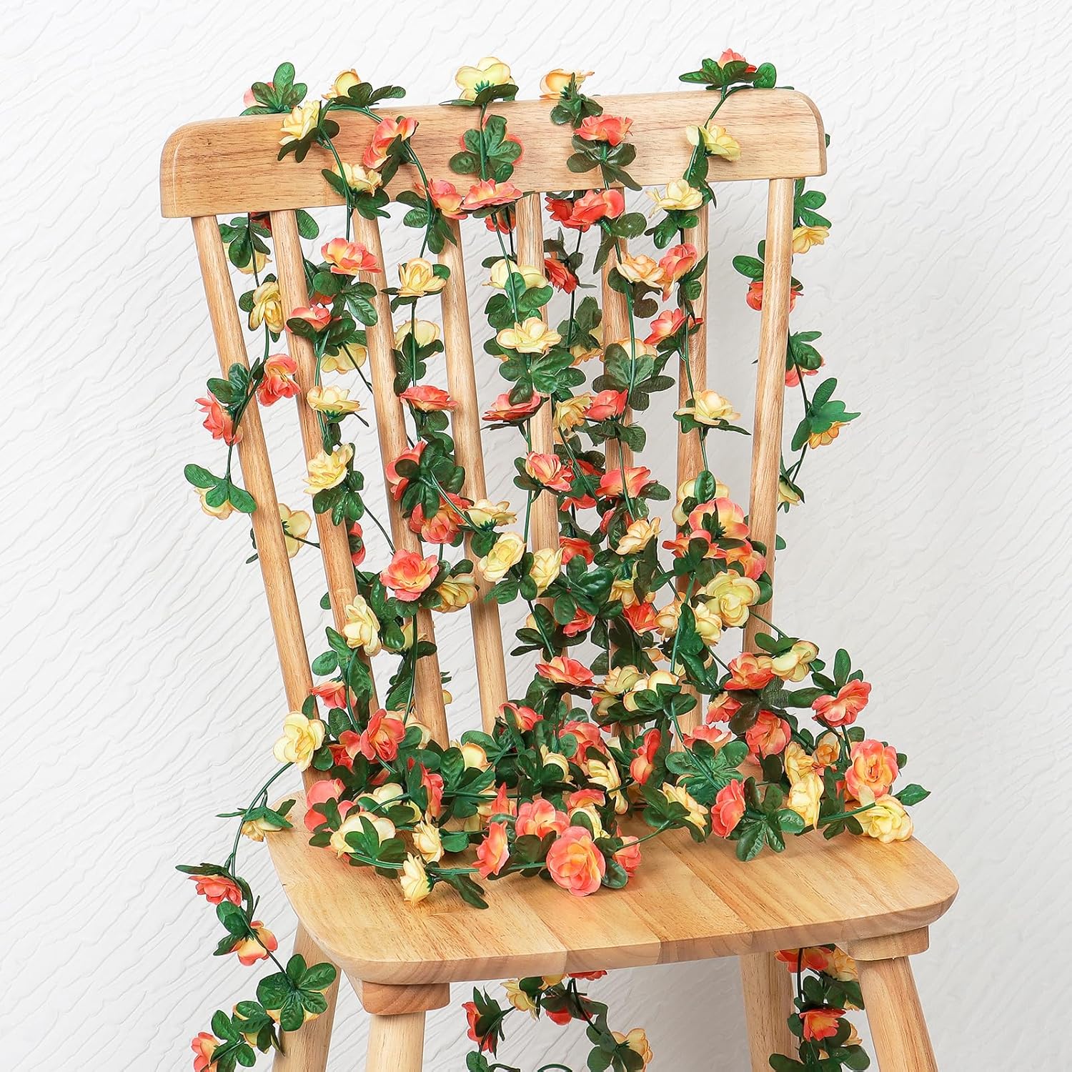 • 【Premium Materials】The vivid faux garland's flowers and leaves are made of soft silk cloth, stems are made of durable plastic. No glue. The petals are naturally curved, simulating the shape of a real flower, lifelike. The flowers and leaves are not easy to drop, and you can bend the branch easily.