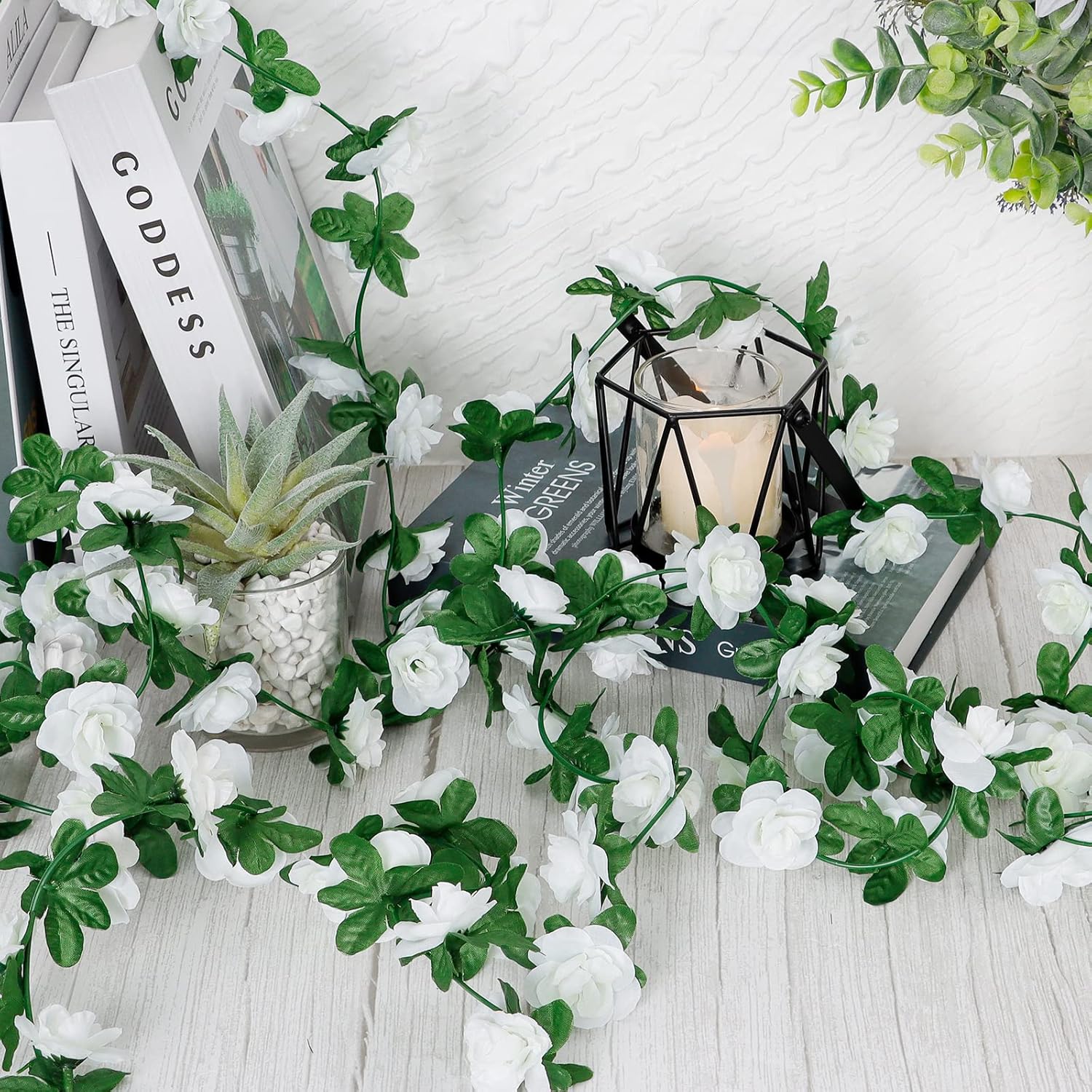 KHOYIME 9 Pack 72 FT Artificial Flower Garland, Fake White Roses Vines Silk Flowers Faux Plastic Outdoor Hanging Floral Ivy Garland Decoration for Wedding Arch Bedroom Home Wall Backdrop Room Decor