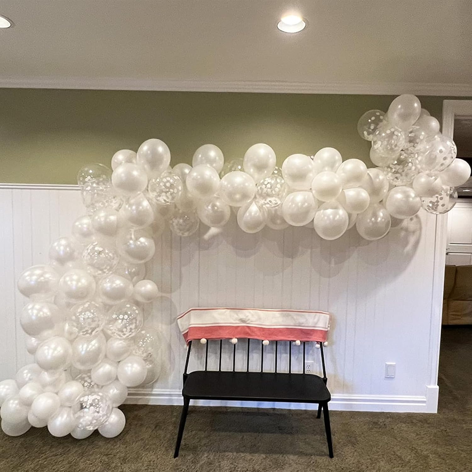 • White Mixed Ballons Set: 30Pcs 12 Inch latex party decoration balloons, include 10pcs pearl white balloons, 10pcs matte white balloons, 10pcs silver confetti balloons and 1pc white ribbon.