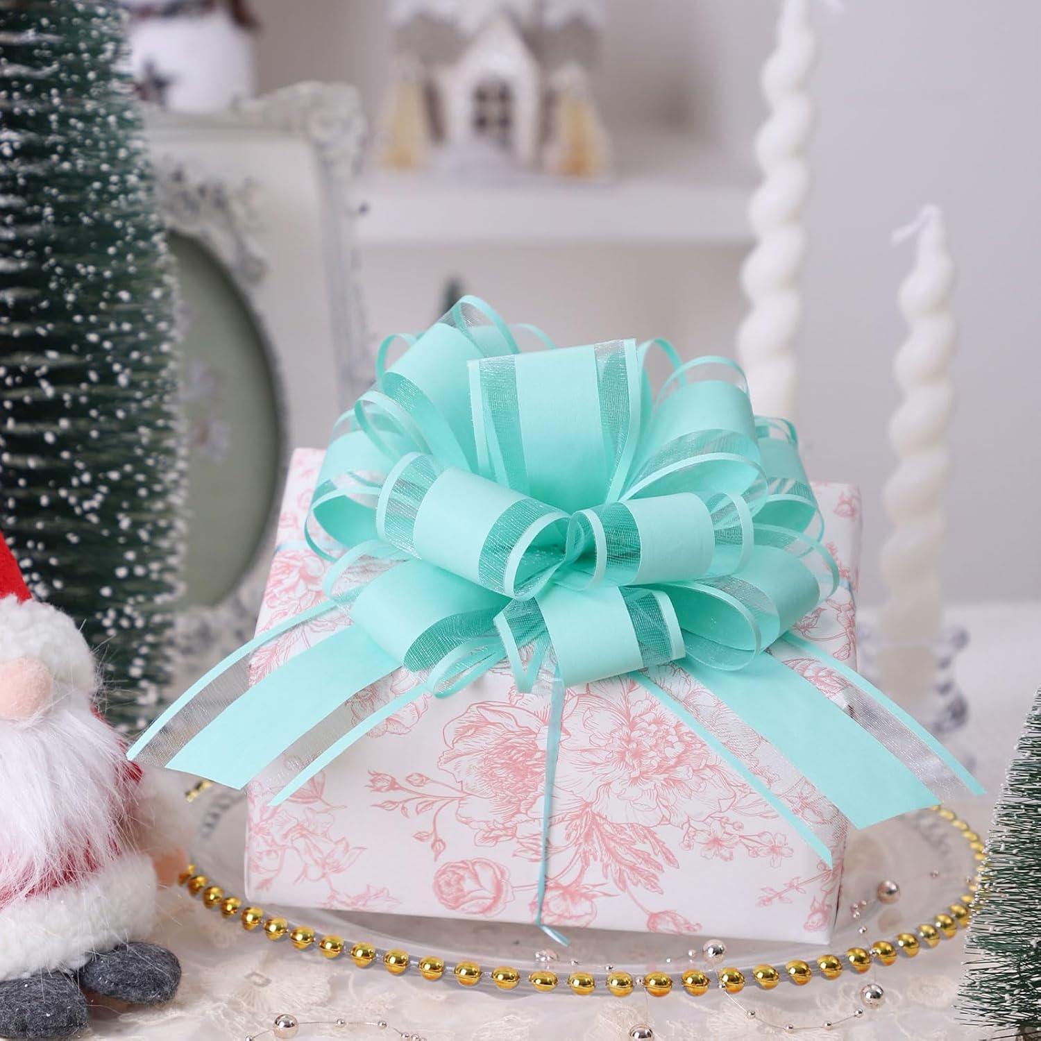 6Pcs 6inch Pull Bow Gift Wrapping,Pull Bow For Gift Basket, Gift Bag Box Wrapping Decor, Valentines Day, Birthday, Anniversary, Wedding, Flower Packaging (Baby Green)