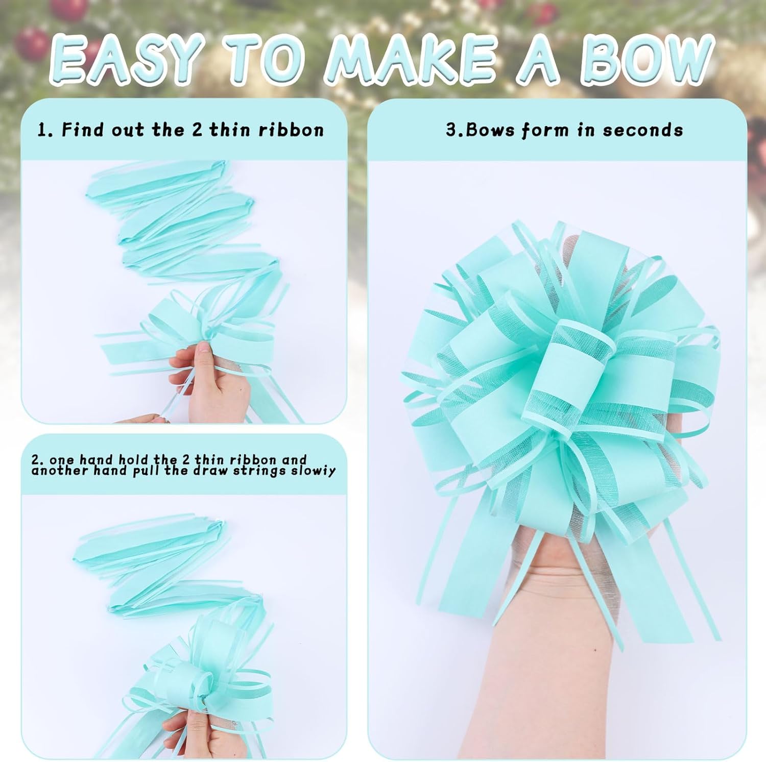 • EASY TO USE: Each pull bow consists of 8pcs of small bow parts which are firmly fixed by plastic rings. After open the bows, you can find out 2 thin ribbon strings and pull them slowly, then take a knot and then a beautiful ribbon bow is finished. (You can follow the steps in the assemble photo .)