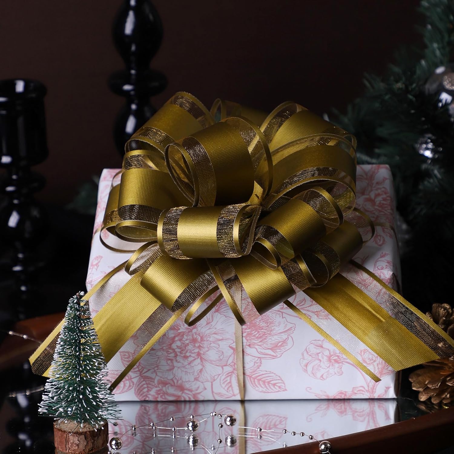 6Pcs 6inch Pull Bow Gift Wrapping,Pull Bow For Gift Basket, Gift Bag Box Wrapping Decor, Valentines Day, Birthday, Anniversary, Wedding, Flower Packaging (Golden)