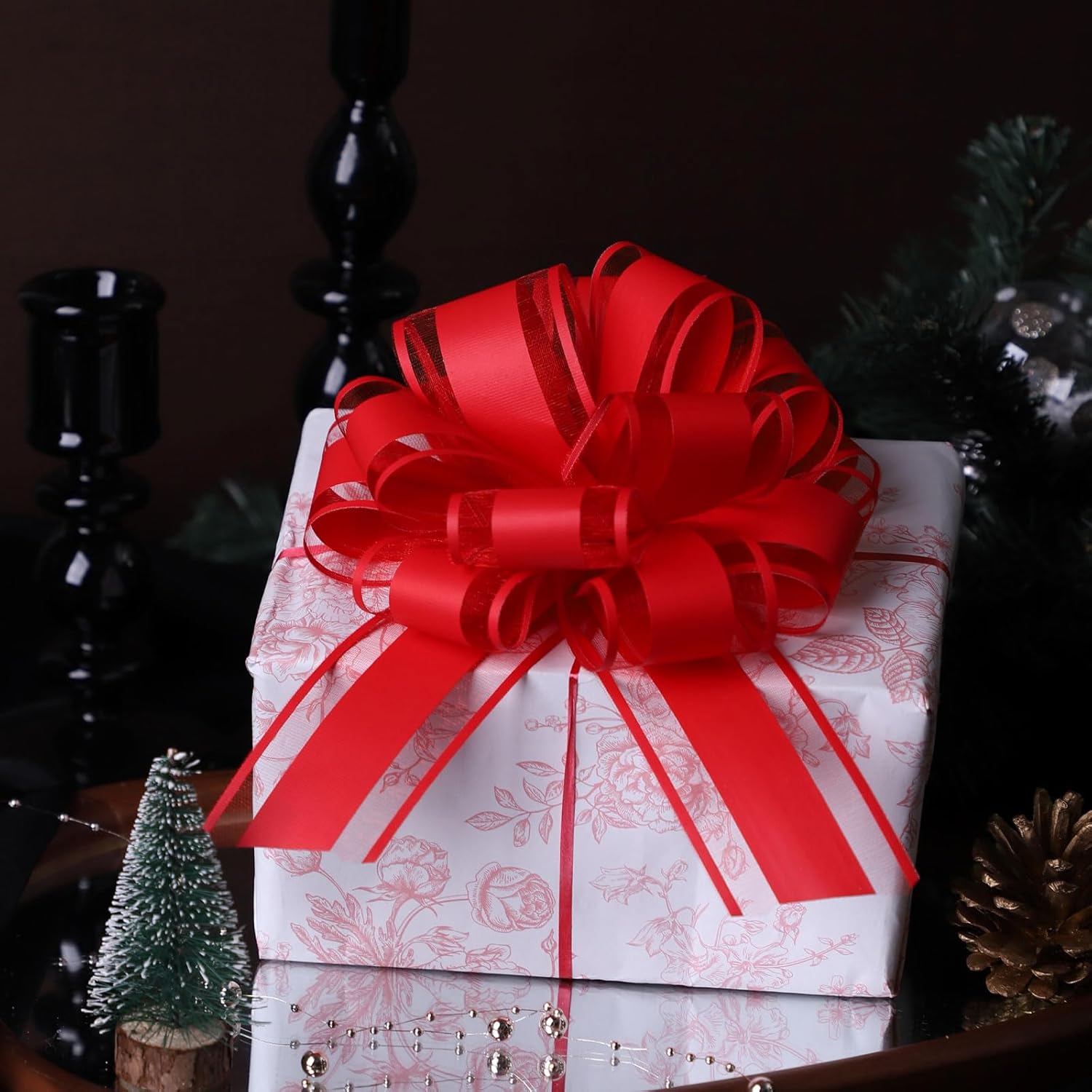 6Pcs 6inch Pull Bow Gift Wrapping,Pull Bow For Gift Basket, Gift Bag Box Wrapping Decor, Valentines Day, Birthday, Anniversary, Wedding, Flower Packaging (Red)