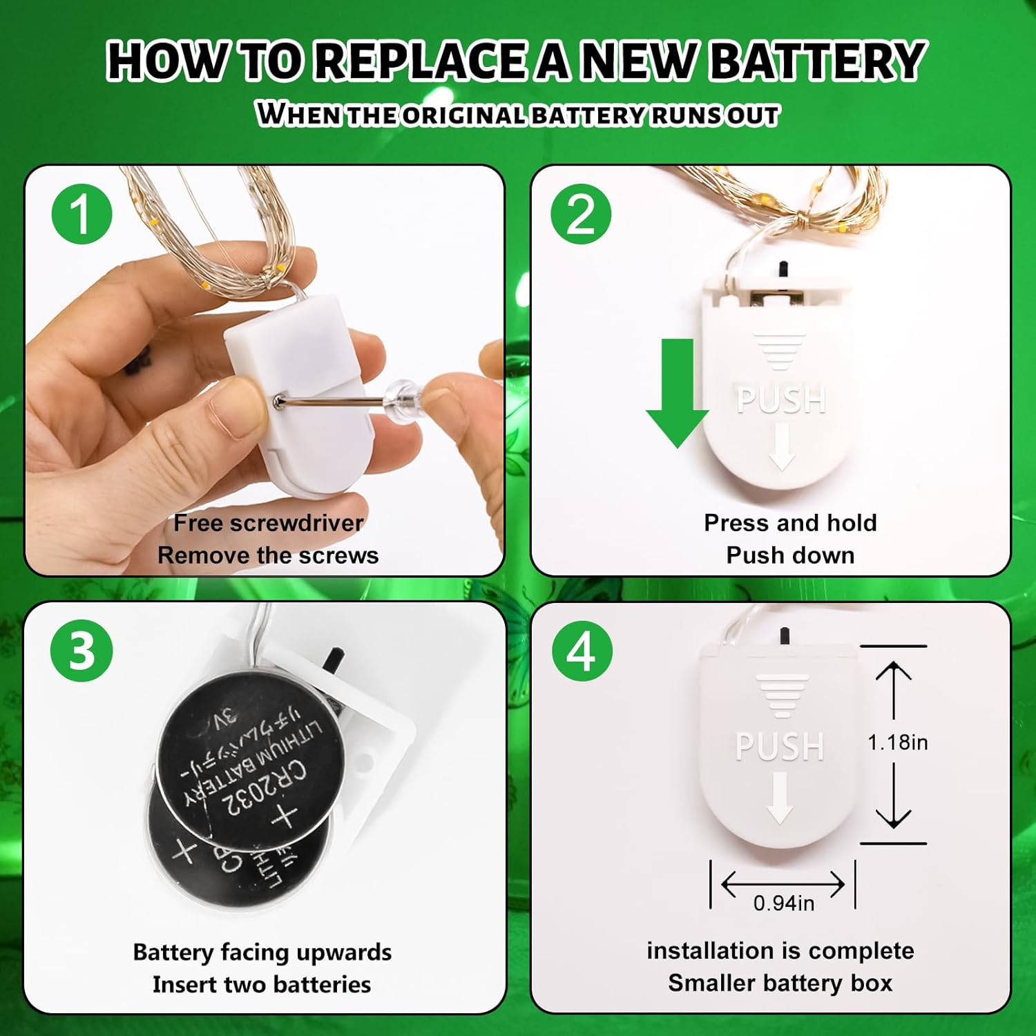 • 【Battery Powered】: Each set of lights powered by 2X CR2032 batteries( included and can be replaced). Although these support more than 72 hours continuous working, the actual use time will vary with the temperature and humidity of the environment.