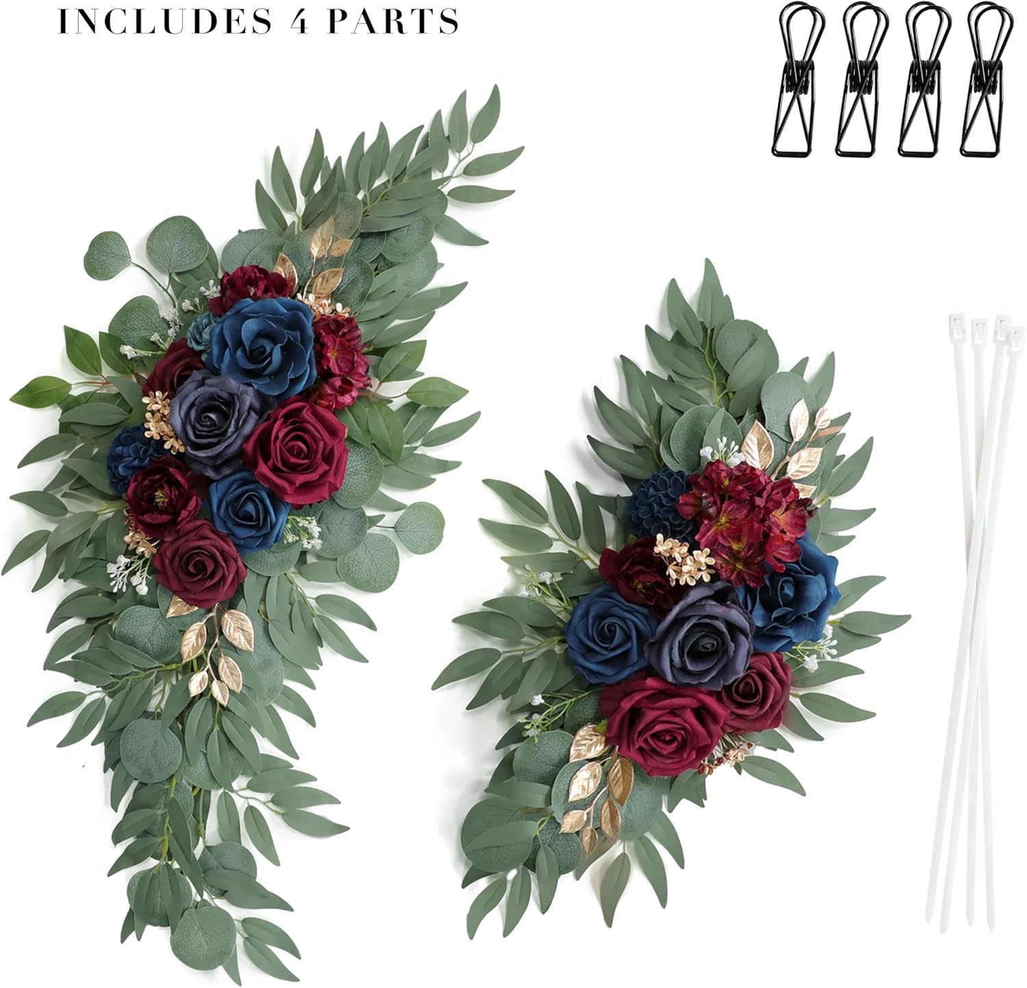 Artificial Navy Blue Wedding Arch Flower Swags Set of 2 for Wedding Welcome Signs Floral and Wedding Reception Ceremony Decorations, Burgundy Wedding Flowers Decor