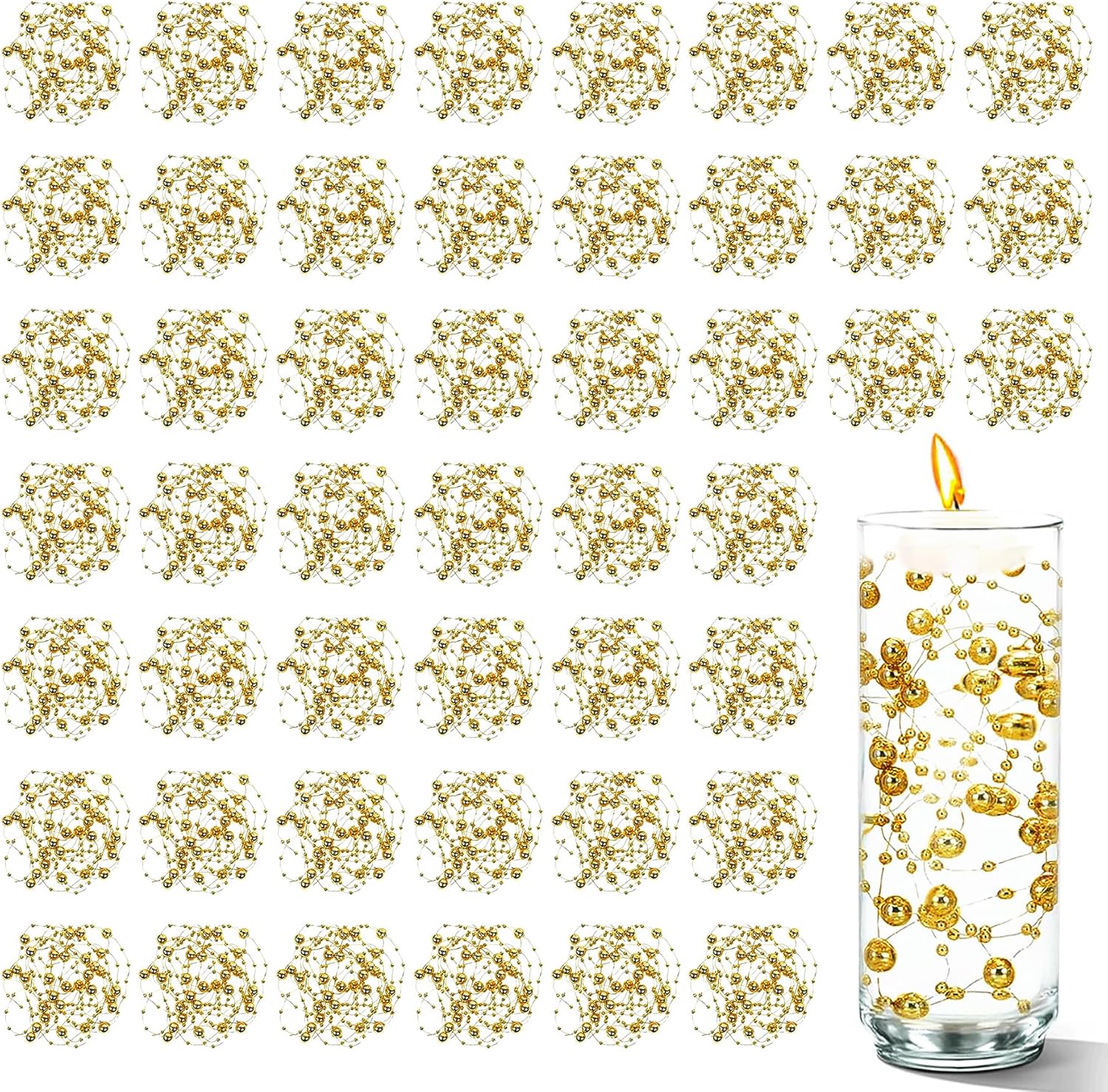 50 PCS Artificial Floating Beads for Centerpieces Vases, Gold 8+3mm String Beads for Wedding Party Faux Pearl String for Decorating, String Pearls for Crafts Vase Filler