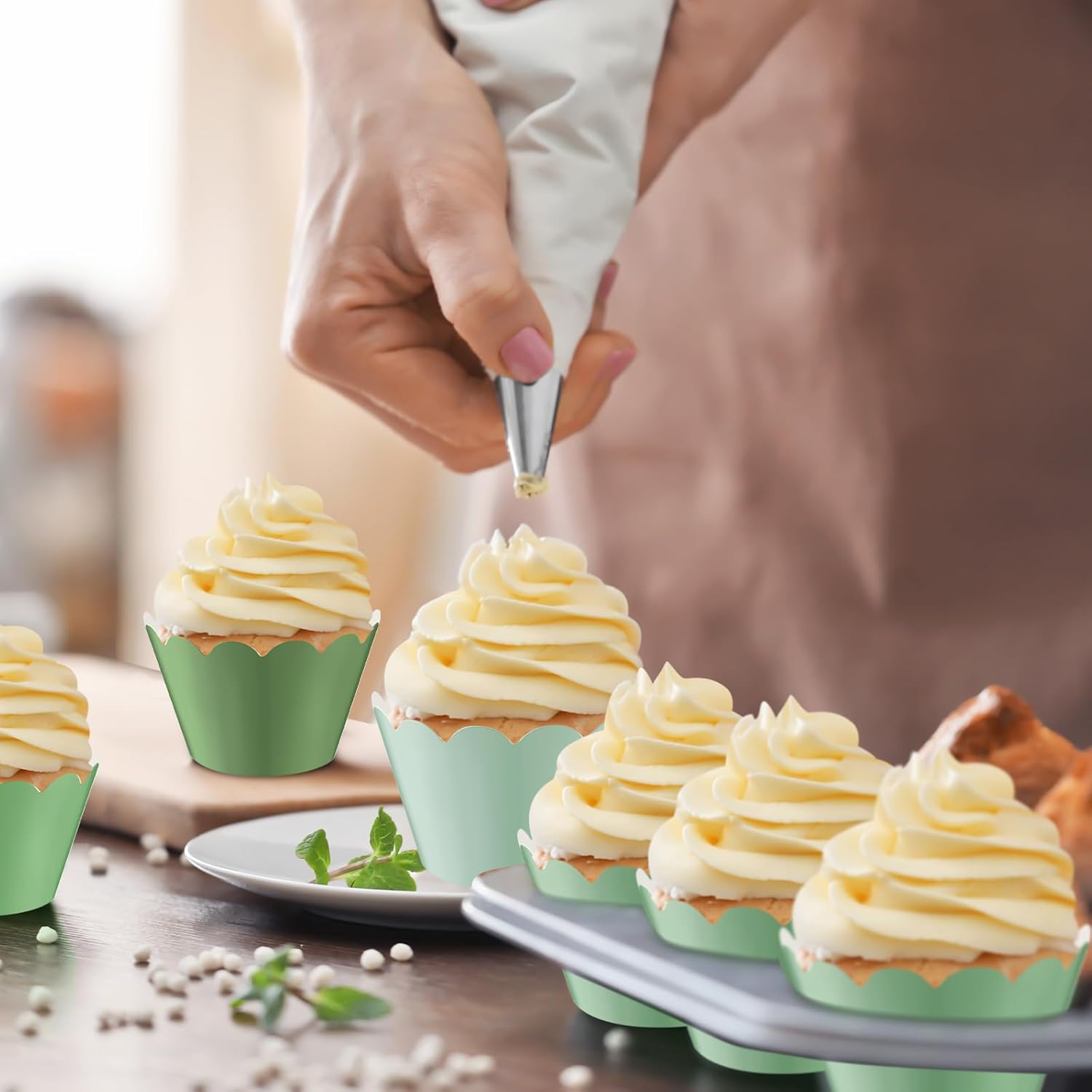 • Wide packaging and attractive design: This pack of 100 cupcake wrappers features a charming sage green color in 4 colors, combining functionality with aesthetic appeal to meet your daily baking needs while adding a touch of refinement to your cupcake presentation