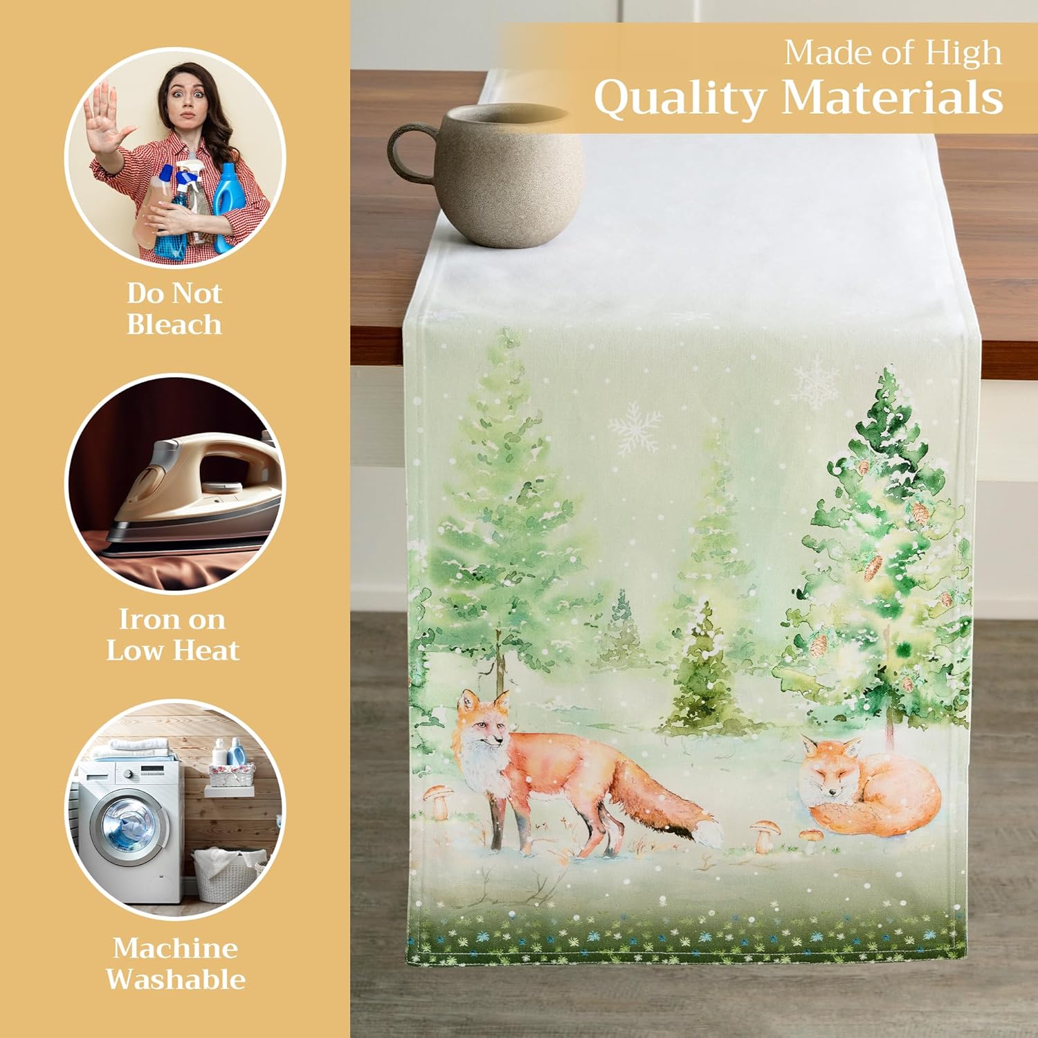 Maison d' Hermine Table Runner 100% Cotton Double Layer Table Runners 72 inches Long for Thanksgiving Christmas Decorations Home Kitchen Dining Party Wedding (Winter Mornings, 14.5" x 72")